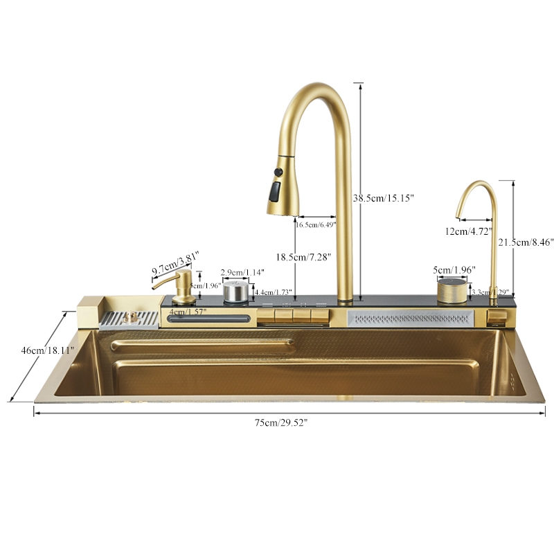 Kit Cuba Cozinha Gourmet Luxo Aço Inox 304 Ouro Fosco Com Acessórios Conjunto De Torneiras 75cm