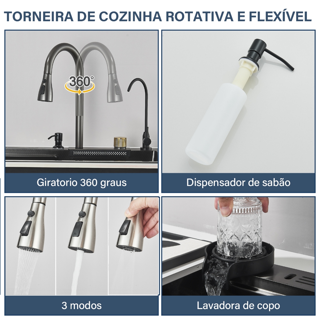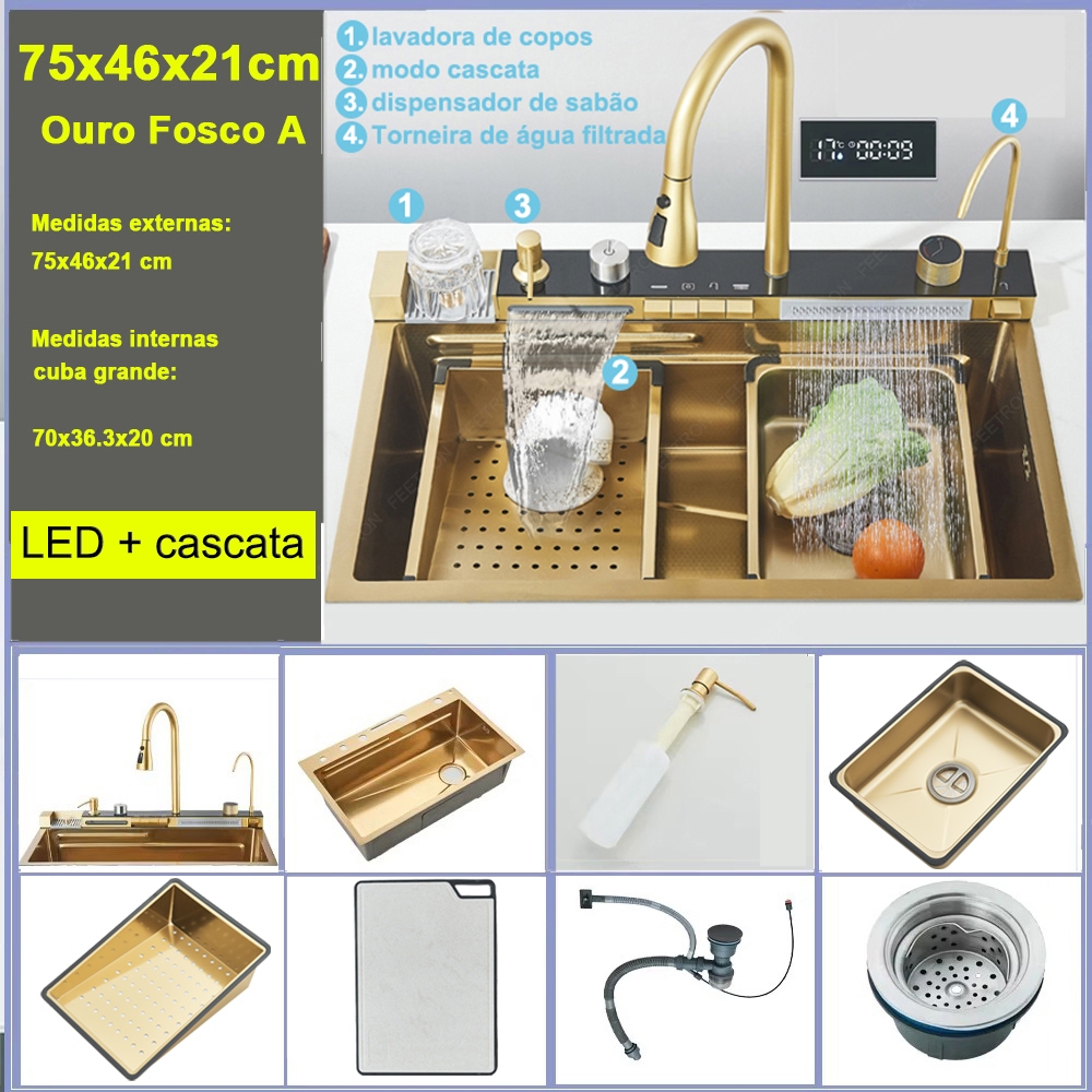 Kit Cuba De Cozinha Gourmet Completa Aço Inox Com Acessórios Mostra A Temperatura+ Torneira Gourmet