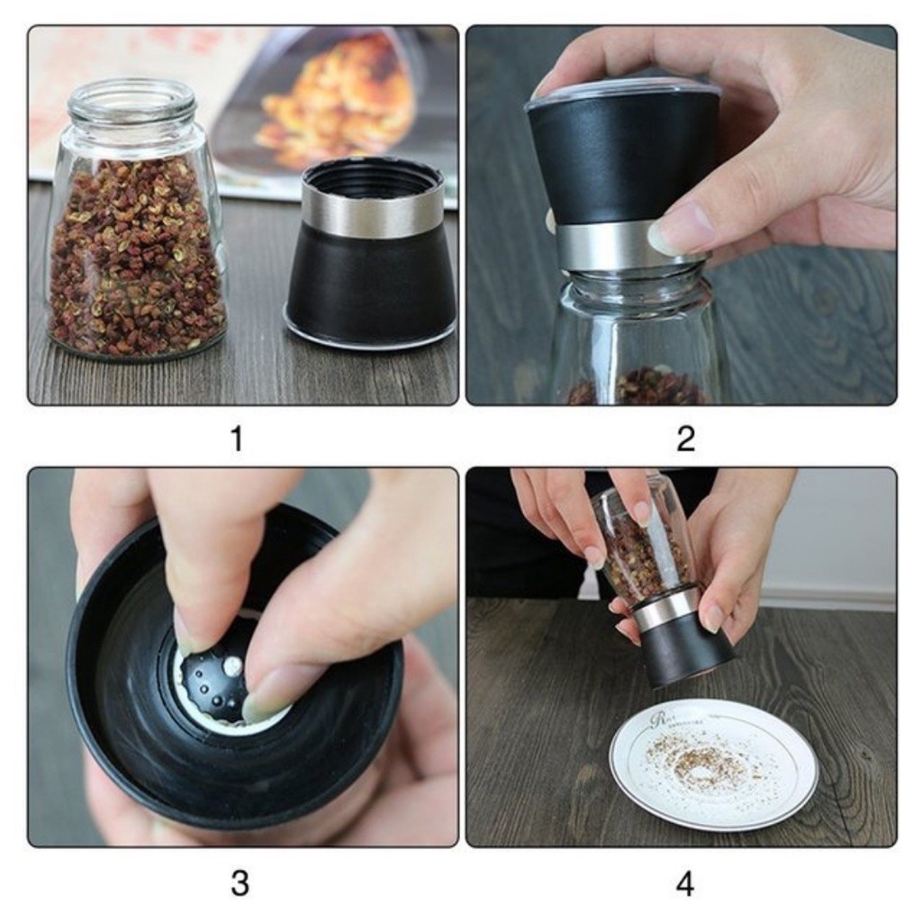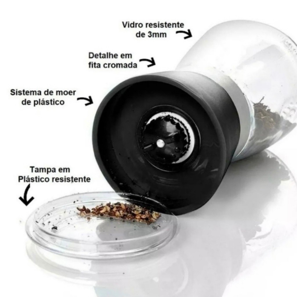 Kit De 2 Moedor De Sal Pimenta Especiarias De Vidro Premium e Inox