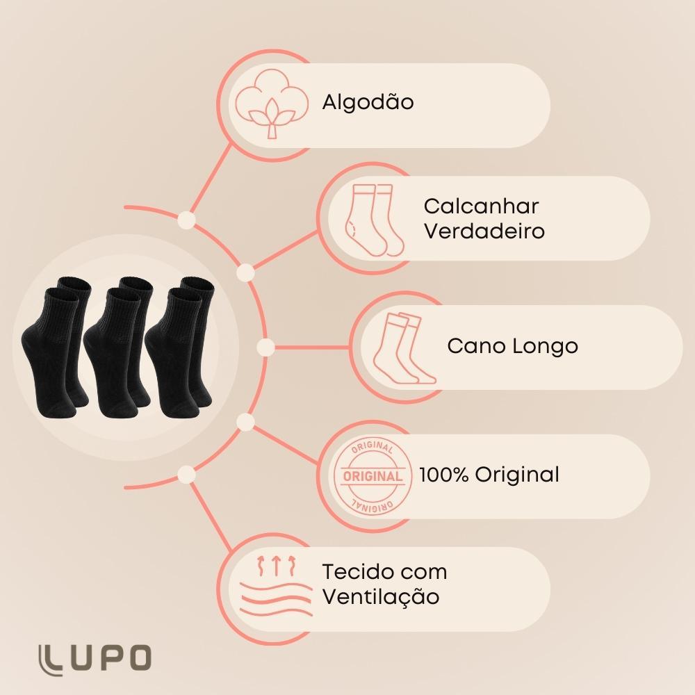 Kit De 6 Pares Meias Lupo Infantil Cano Médio Em Algodão Tamanho 24 ao 35