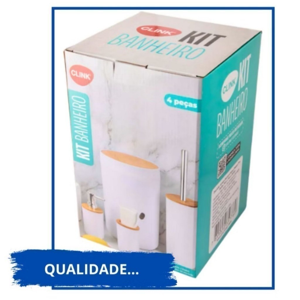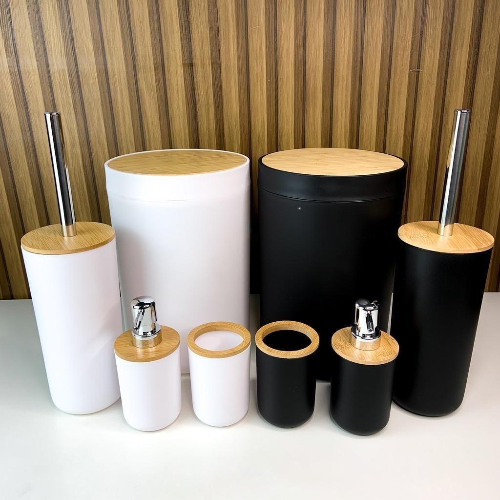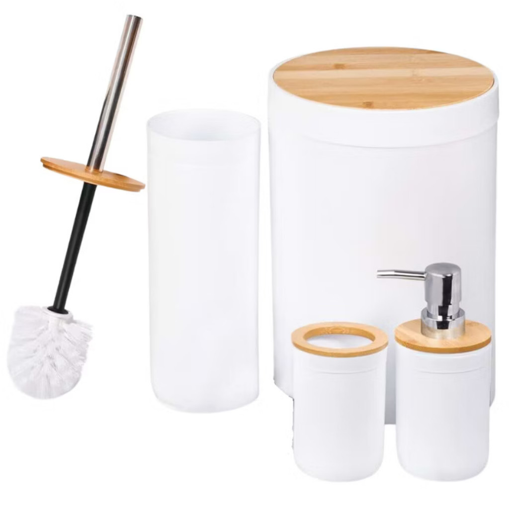 Kit De Banheiro 4 Pçs Copo Escova De Dente E Cesto De Lixo E Frasco De Loção, Escova Vaso Sanitário
