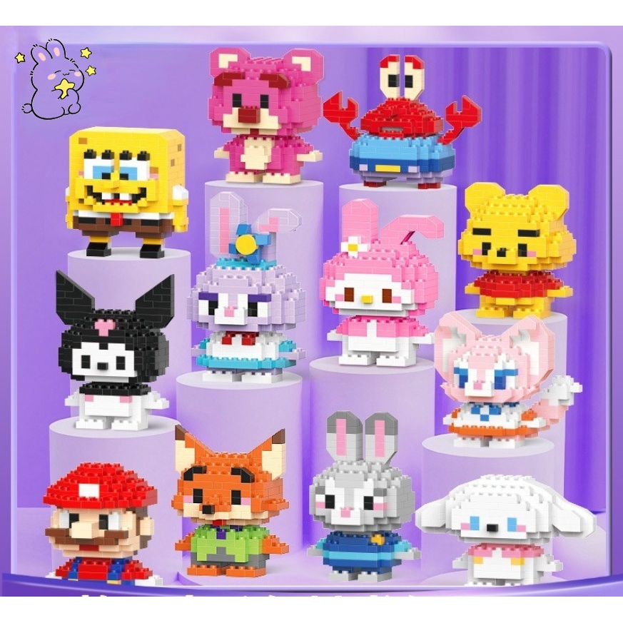 Kit De Blocos De Construção Nano DIY 50 Em 1 , Micro Personagens De Desenhos Animados Com Expositor , Presente De Natal