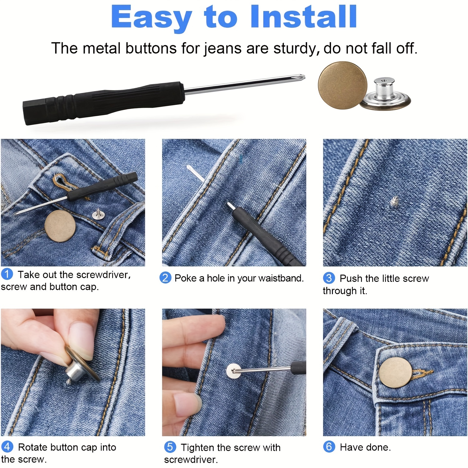 Kit De Botões Jeans Sem Costura – Redutor De Tamanho De Cintura Ajustável Conveniente , De Pressão De Metal Para Calças