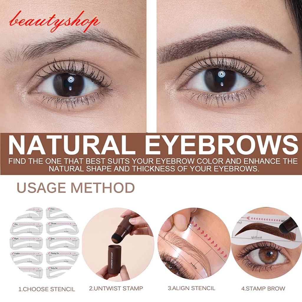 Kit De Carimbo De Sobrancelha-À Prova D'água , 10 Estênceis Reutilizáveis E Maquiagem Em Pó