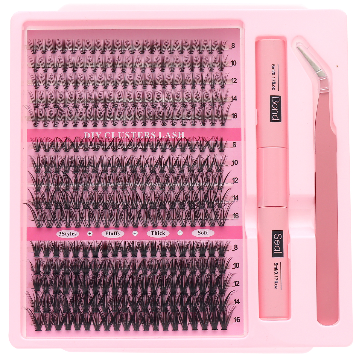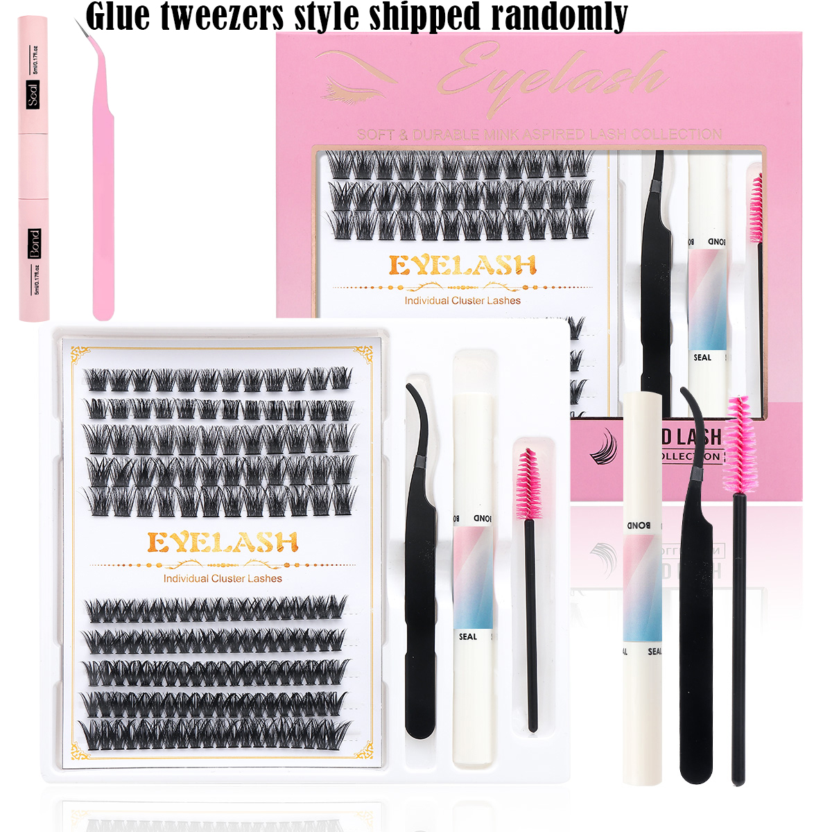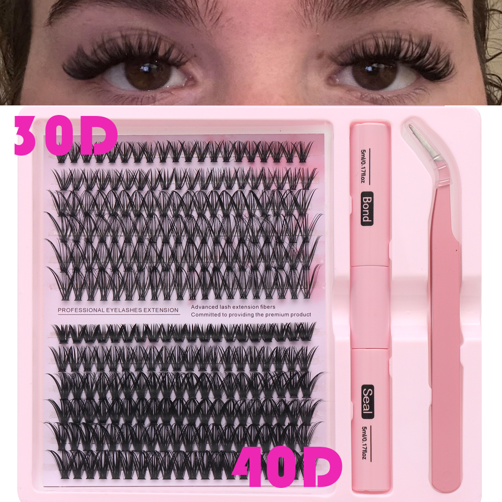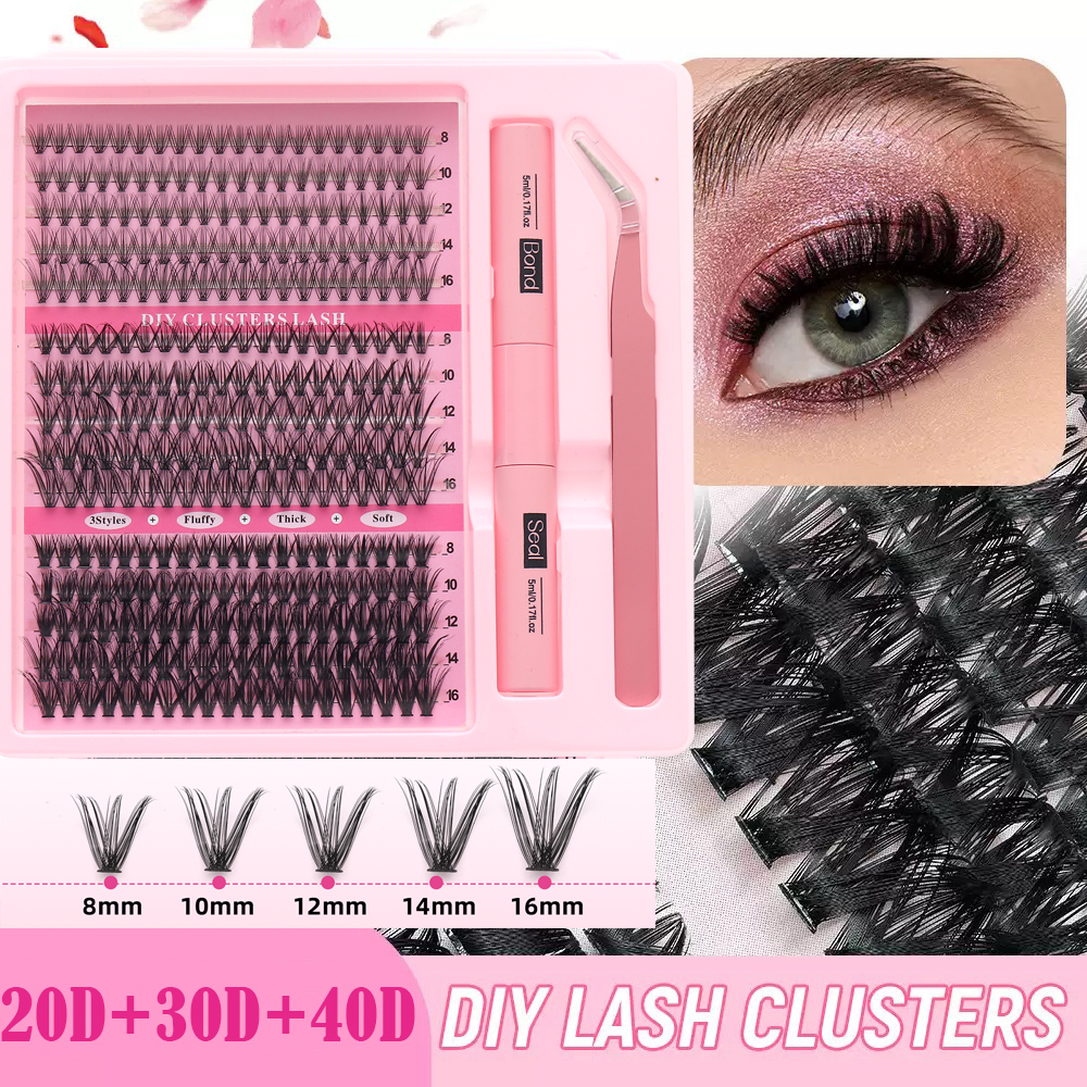 Kit De Extensão De Cílios , Clusters De Penugem De Volume Grosso De 8-16 Mm Individuais Com Pinça De Ligação DIY