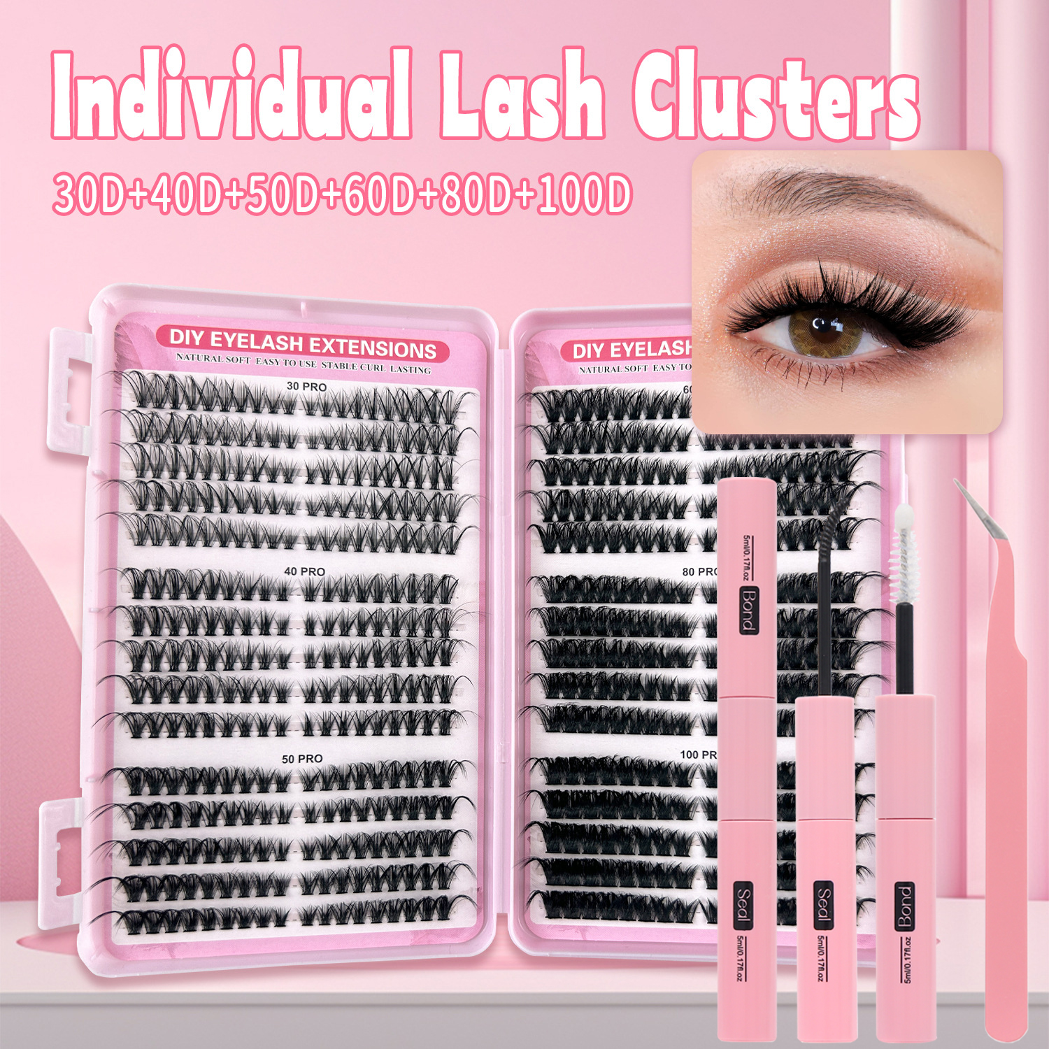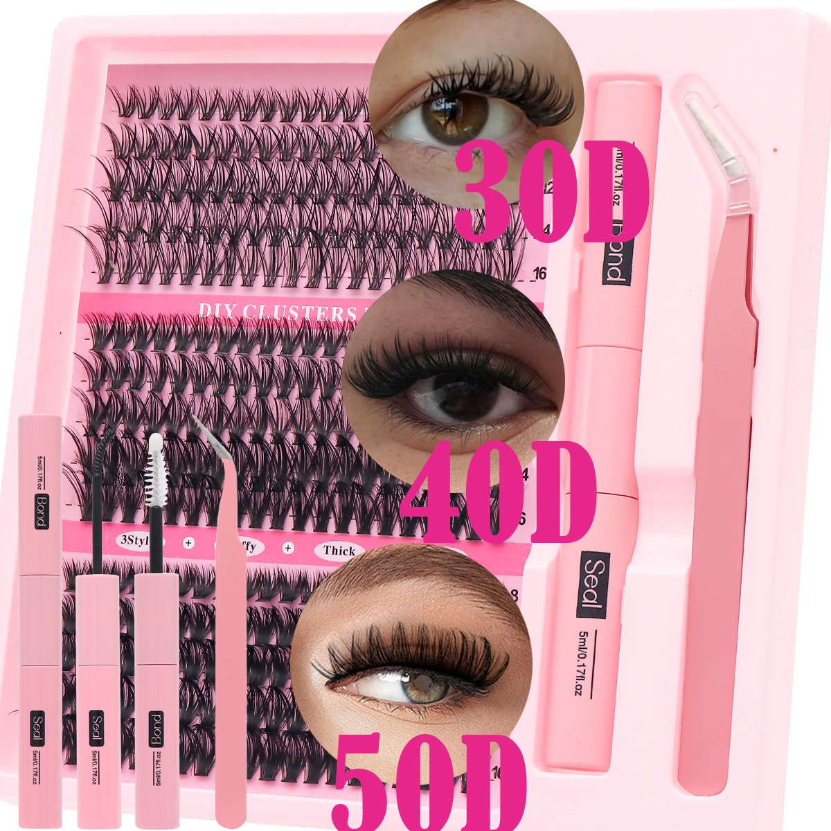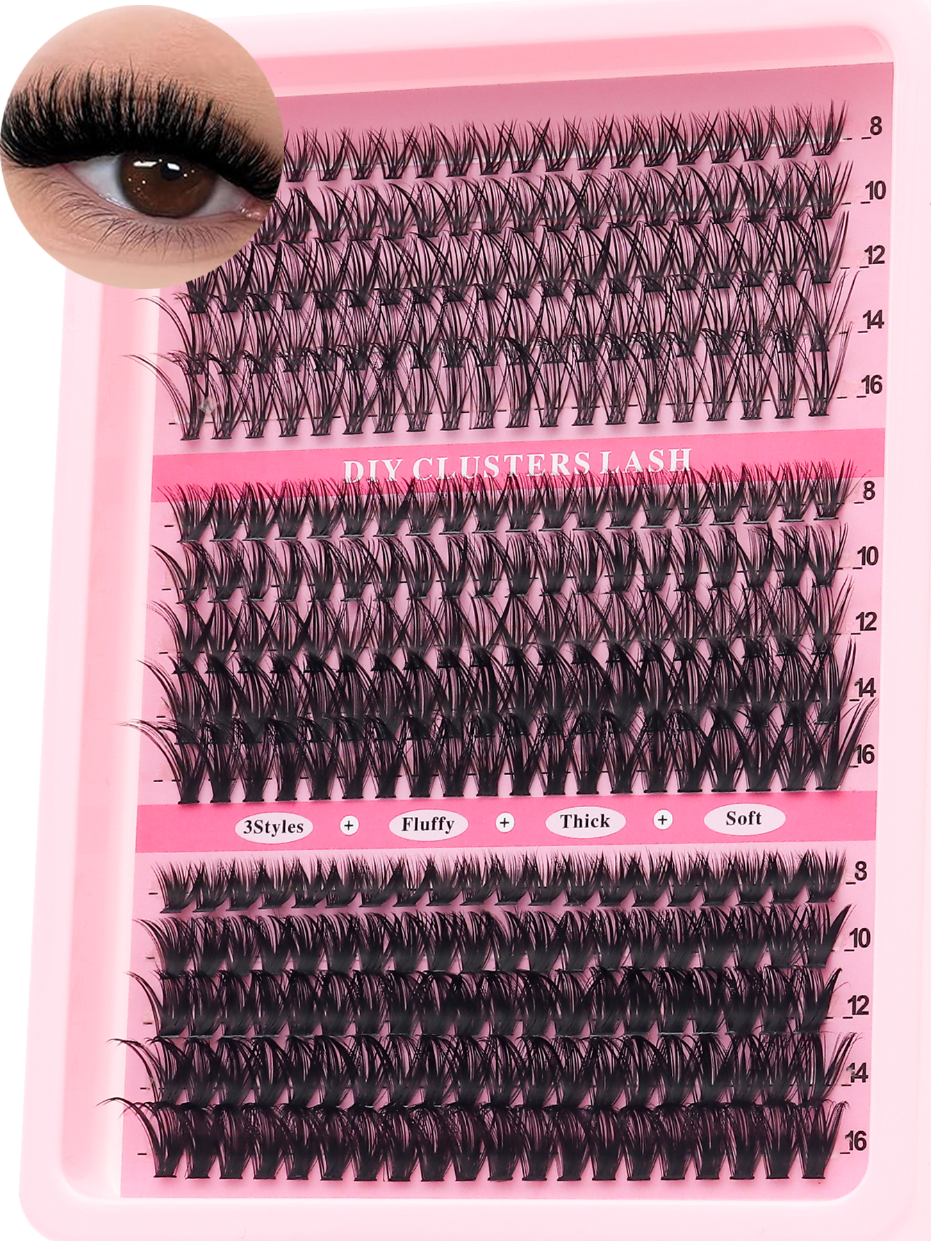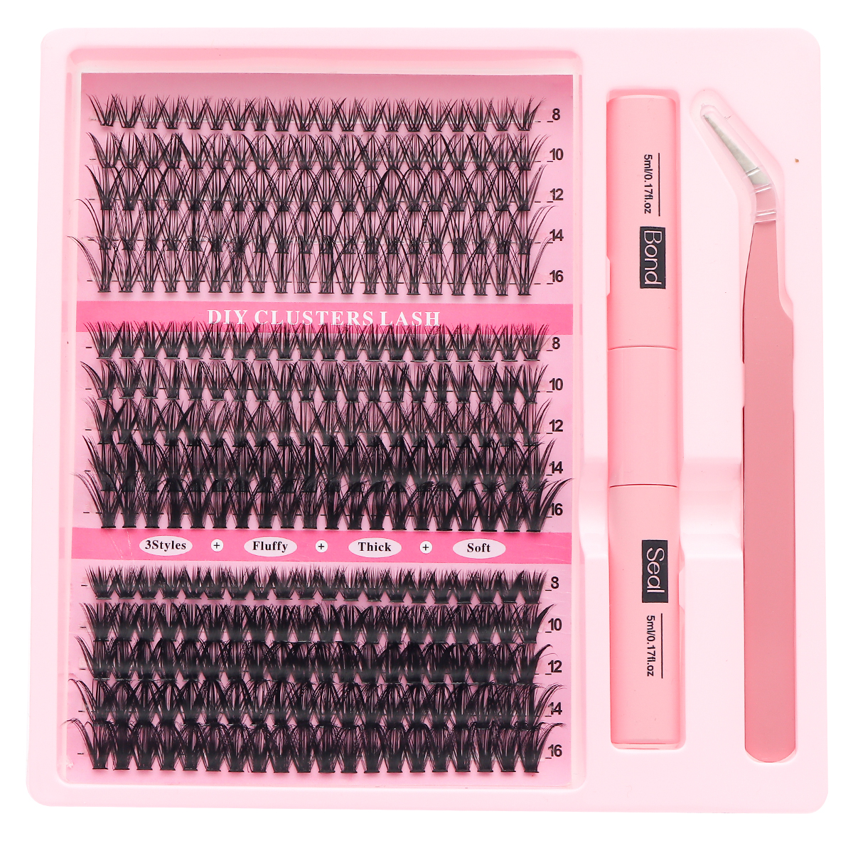Kit De Extensão De Cílios , Clusters De Penugem De Volume Grosso De 8-16 Mm Individuais Com Pinça De Ligação DIY