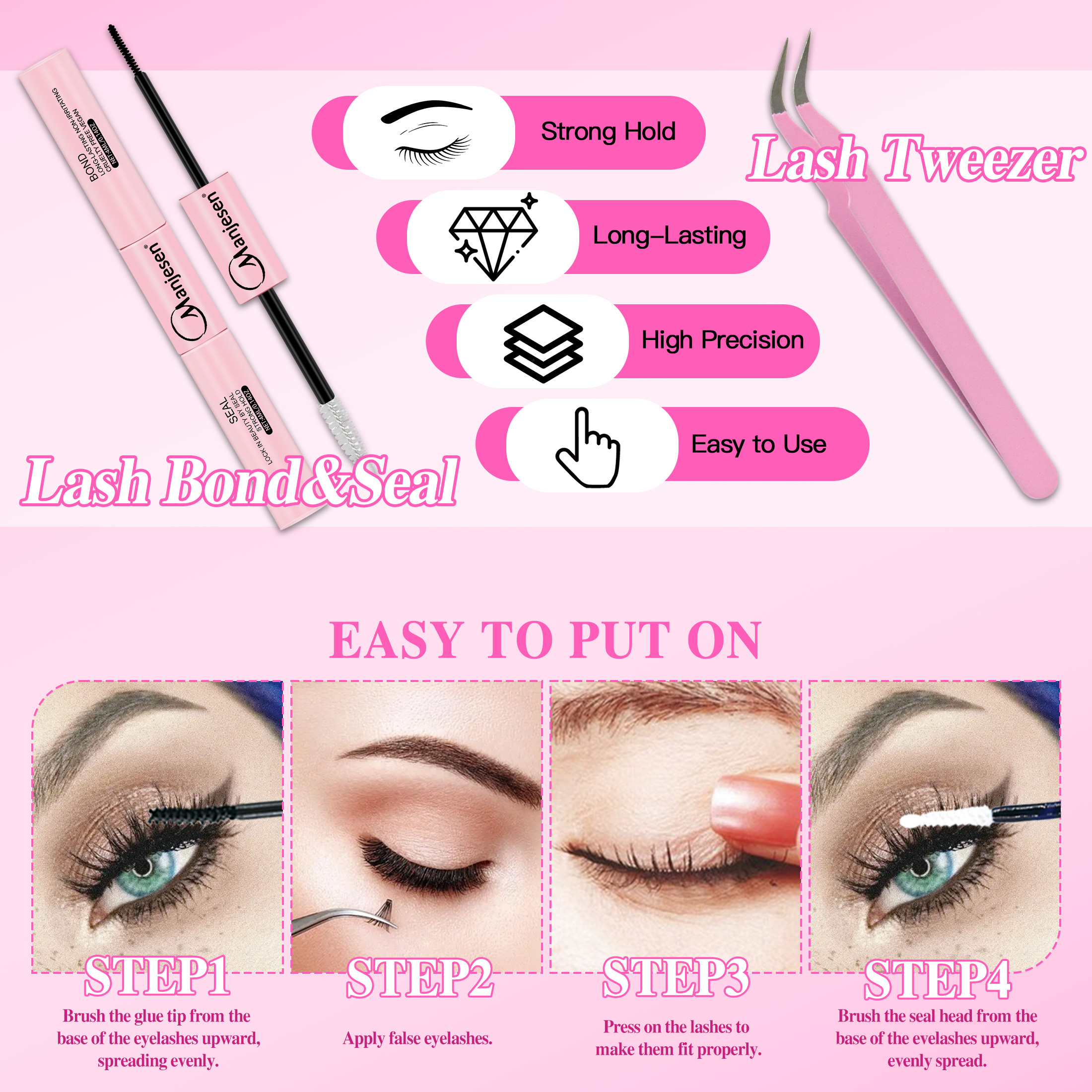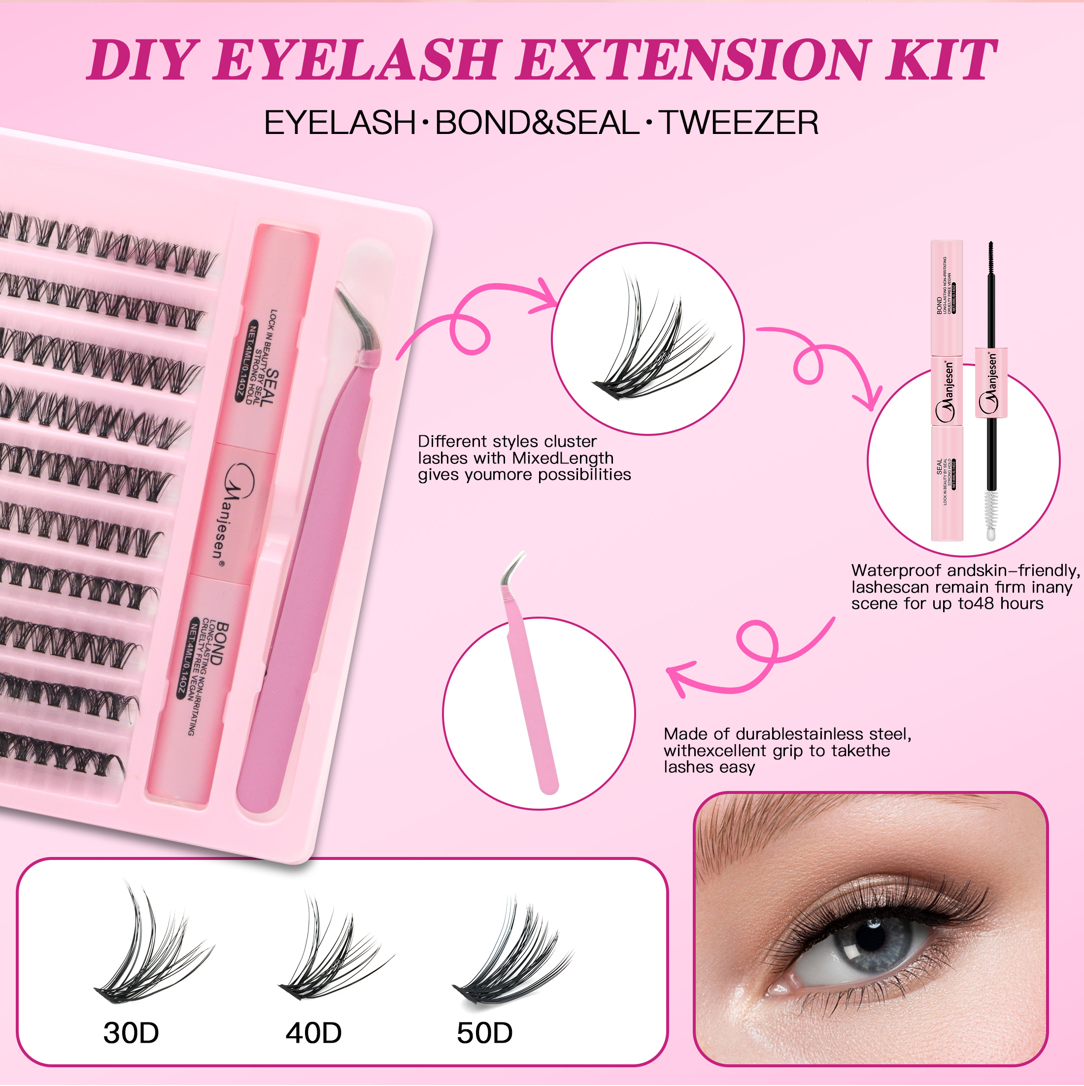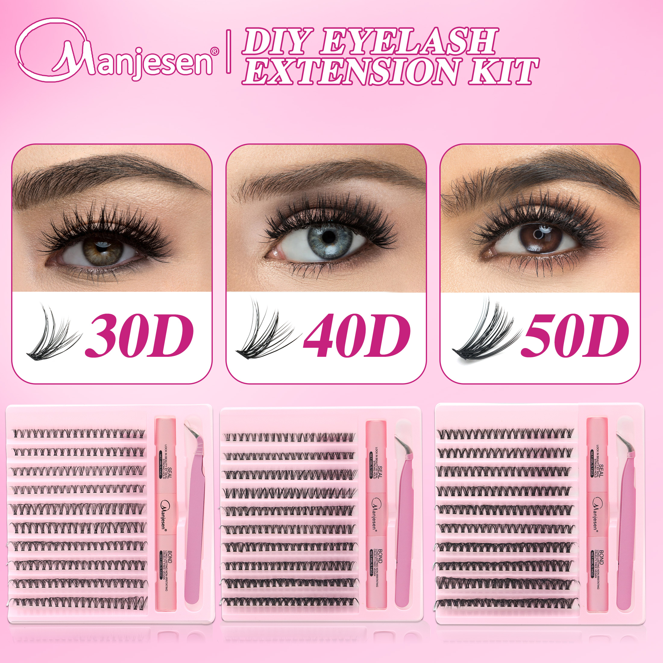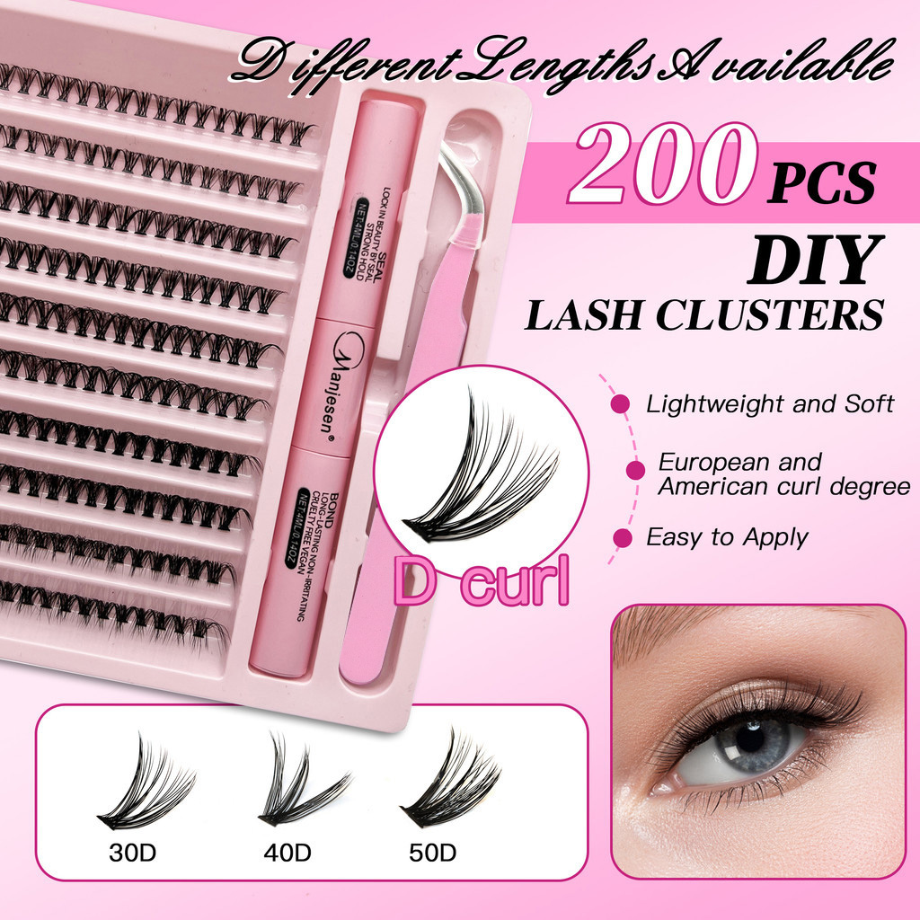Kit De Extensão De Cílios Manjesen-Pacote Com 200 Cola E Pinças , Ondulados Em Forma De D