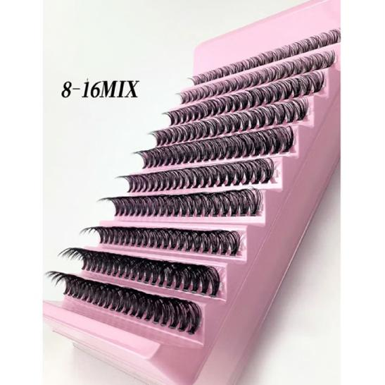 Kit De Extensões De Cílios Encaracolados D Fofos-Tufos DIY De 200 Peças 8-16 Mm