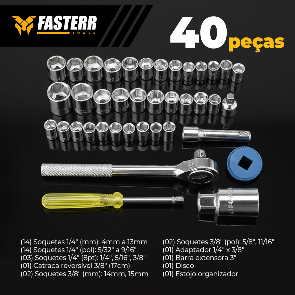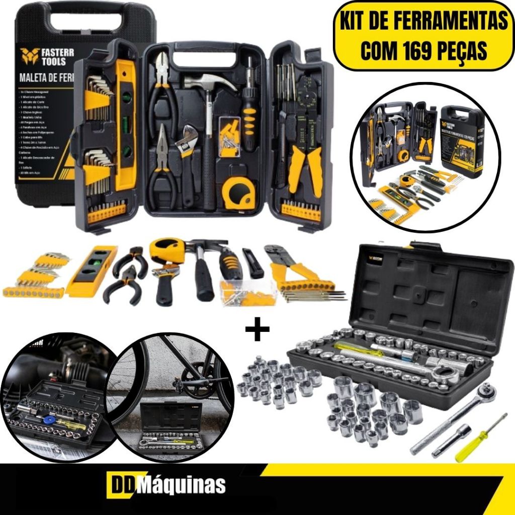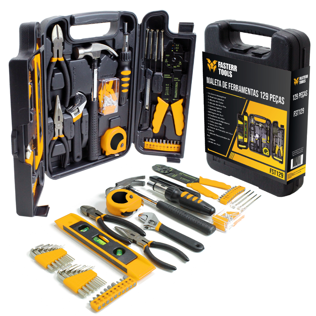 Kit De Ferramentas Com 129 Peças FST129 + Jogo De Soquete FST003 40 Peças - Fasterr