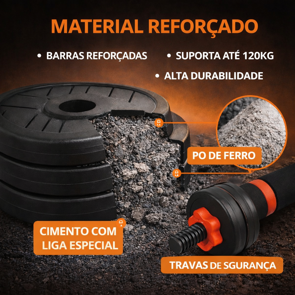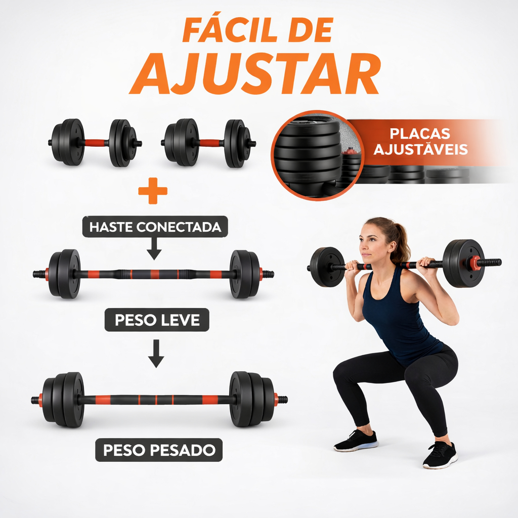 Kit De Halteres E Anilhas Ajustáveis Ajustáveis Academia 15kg Preto Treino em casa