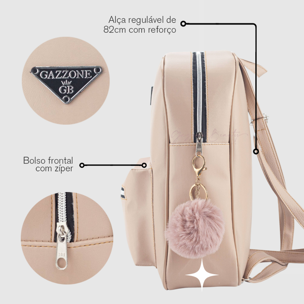 Kit De Mochila Feminina Grande Media + Mini Mochilinha Moda Estilosa Premium Chaveiro Pompom