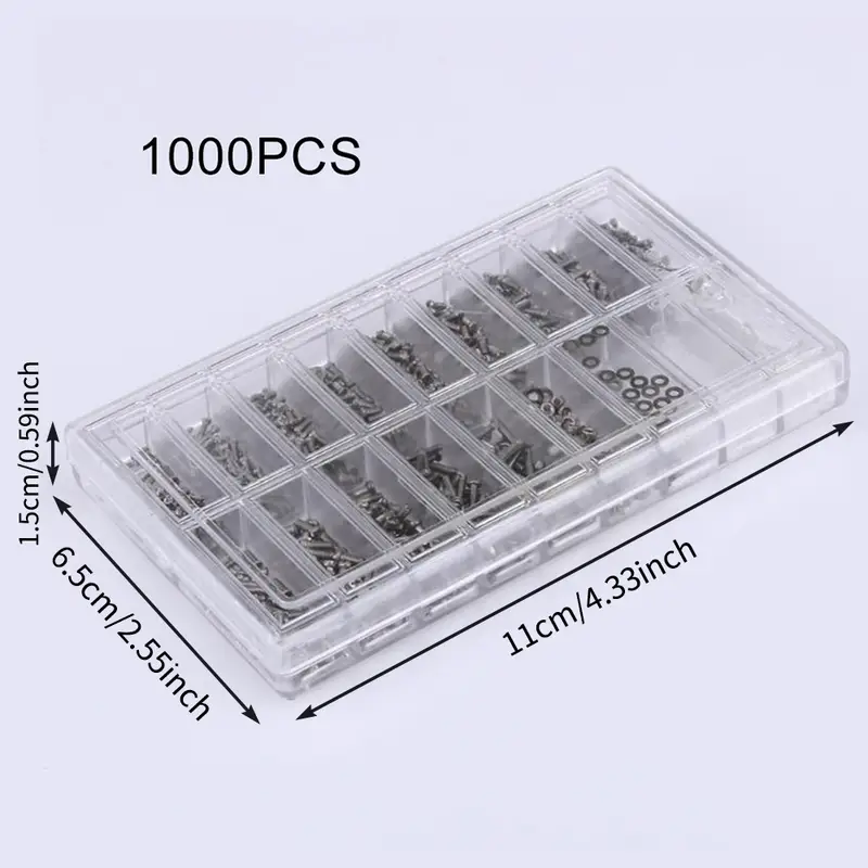 Kit De Parafusos Para Óculos De Cabeça Redonda PM Premium 18 Especificações Com Espaçador E Chave De Fenda 1000 Unidades