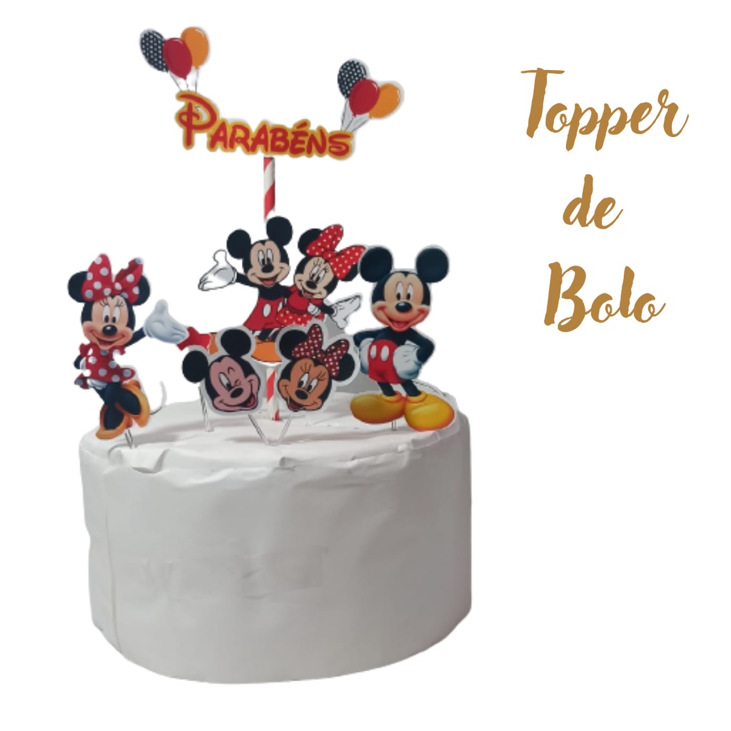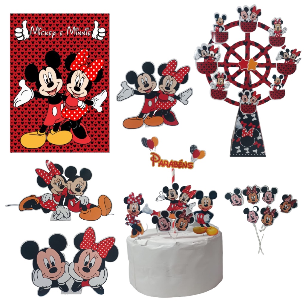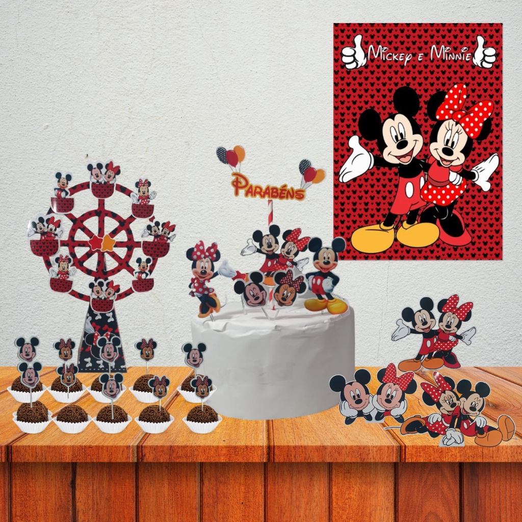 Kit Decoração Minnie e Mickey só um bolinho simples festa em casa