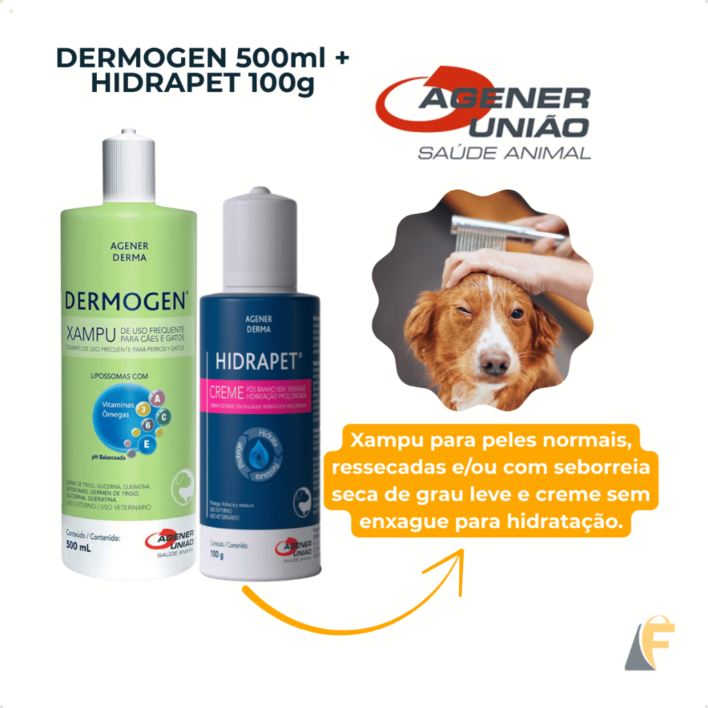 Kit Dermogen Xampu 500ml + Hidrapet Creme 100g Cães Gatos