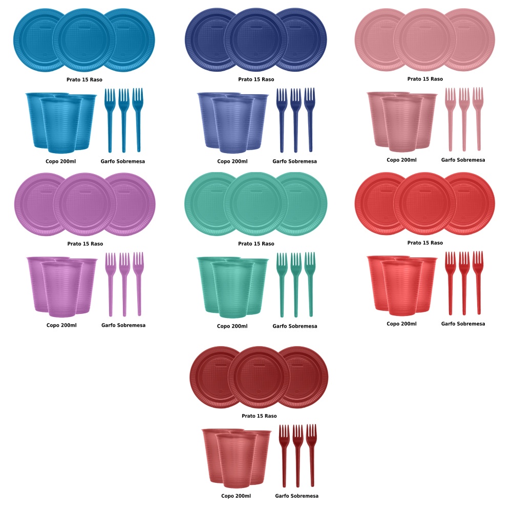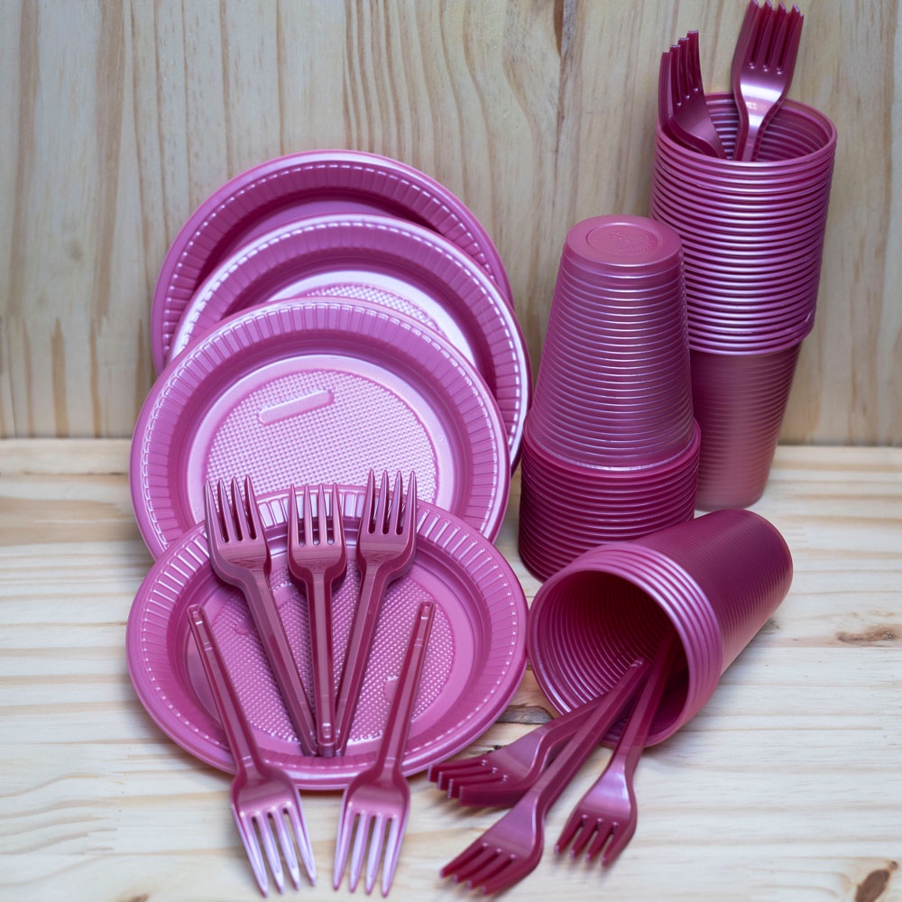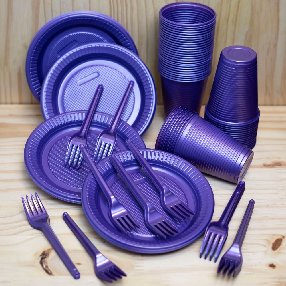 Kit Descartáveis Festa Perolado Luxo 100 Pessoas 300 Itens - Cores Padronizadas e Exclusivas