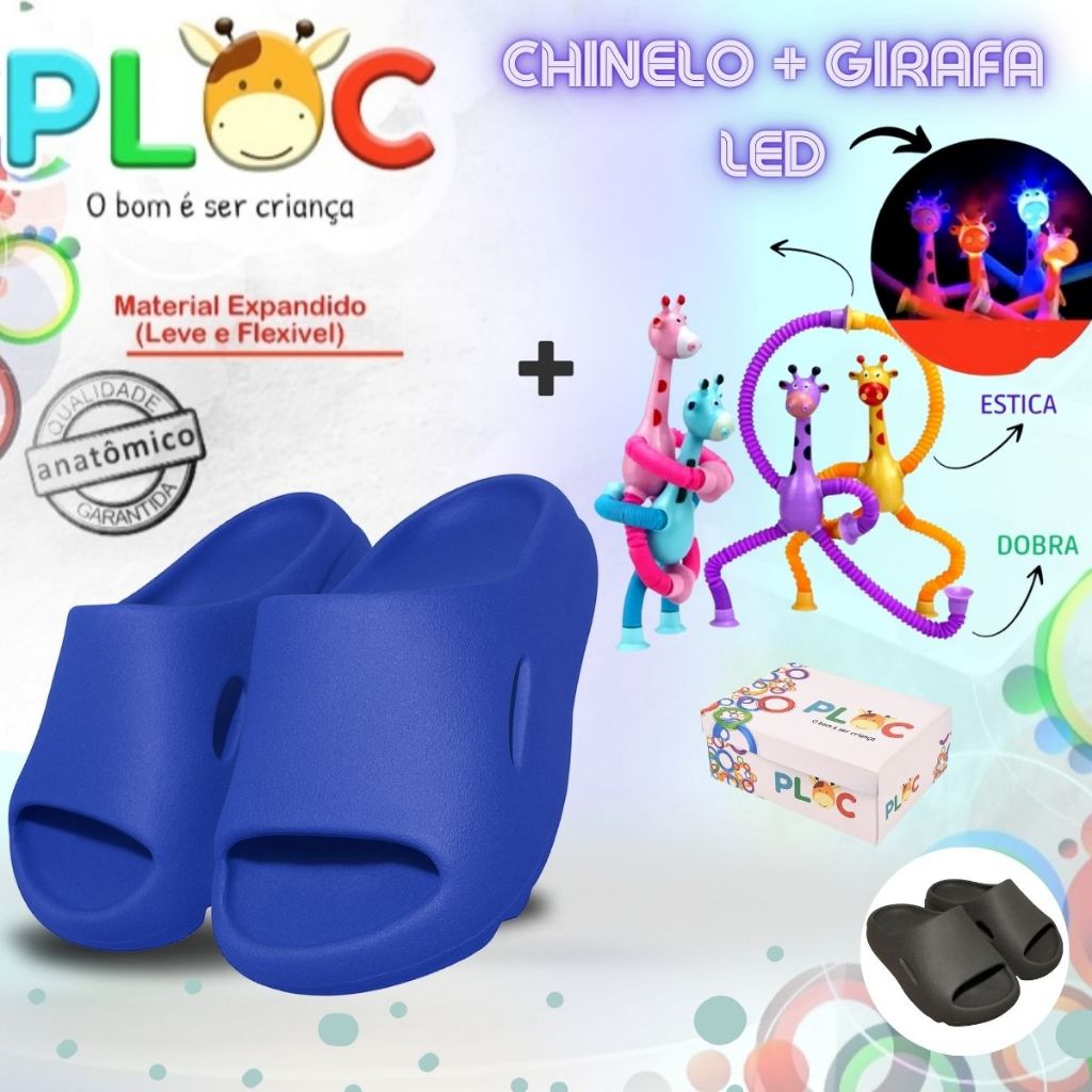 Kit Divertido Ploc - Chinelo Azul + Girafa Ploc LED Estica e Puxa MENINA