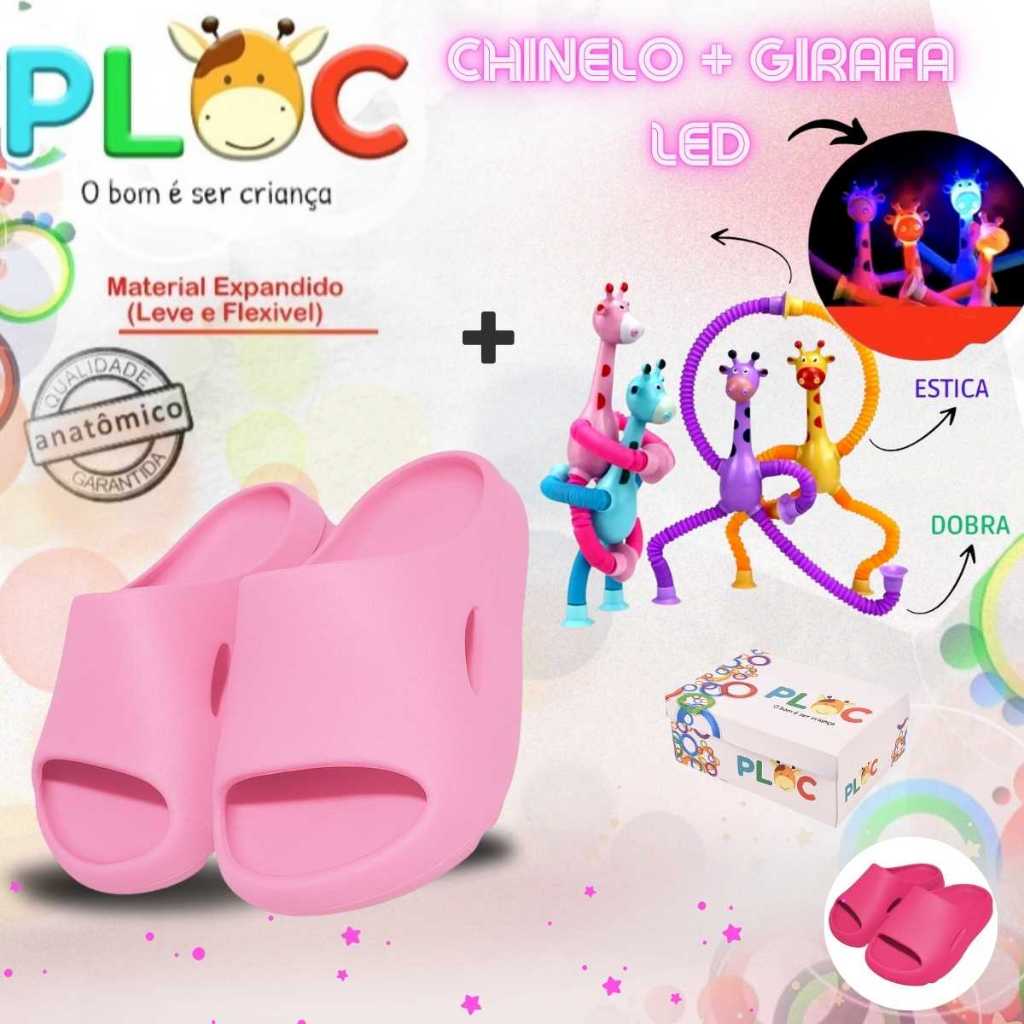 Kit Divertido Ploc - Chinelo Rosa + Girafa Ploc LED Estica e Puxa MENINA