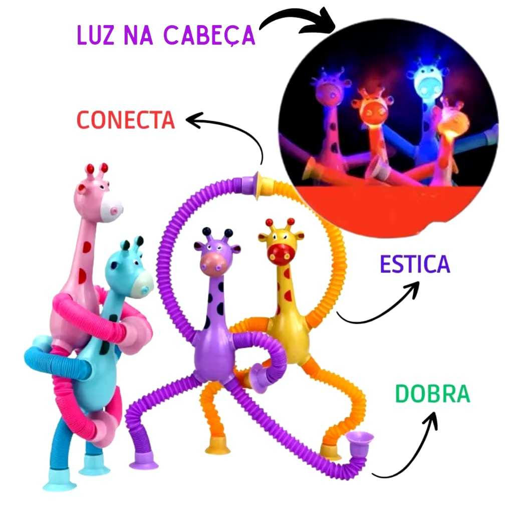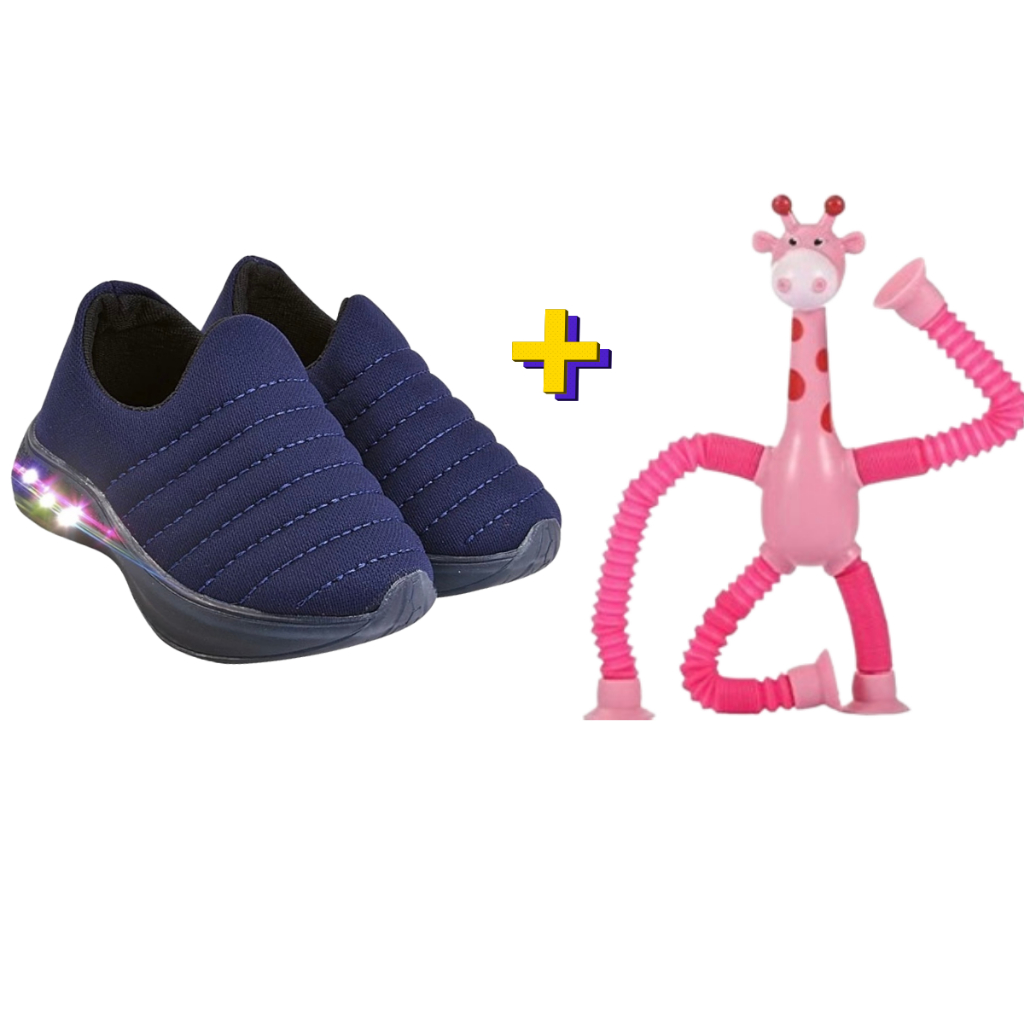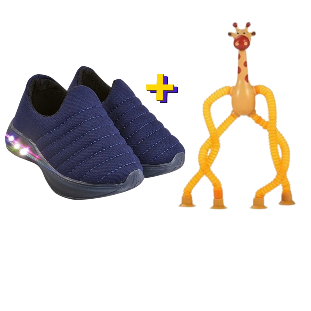 Kit Divertido Ploc LED - Tênis LED + Girafa Ploc LED Estica e Puxa MARINHO MENINO