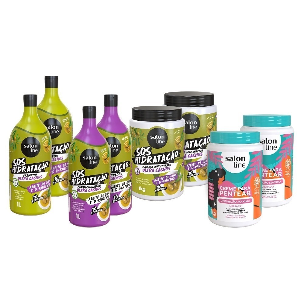 Kit Duplinha SOS Hidratação Ultra Cachos e Creme para Pentear Definição Máxima 1kg Salon Line