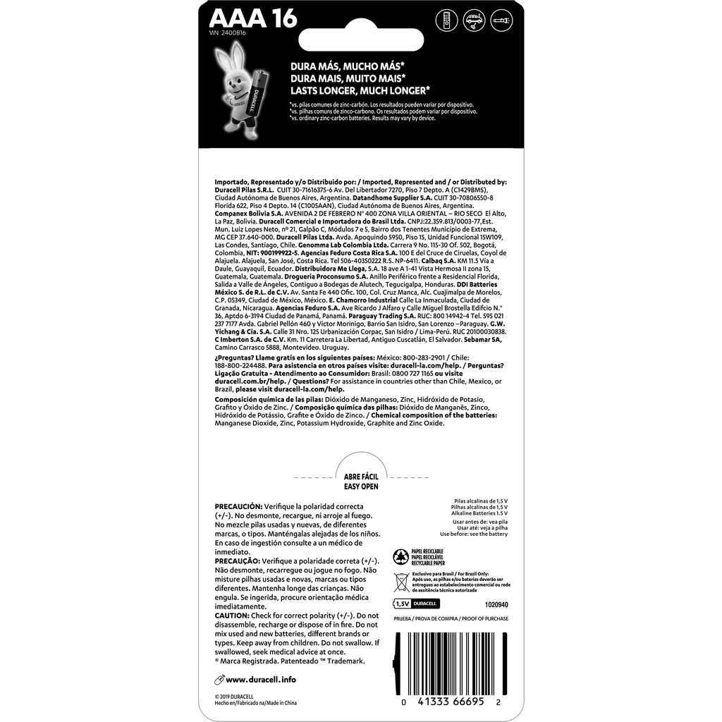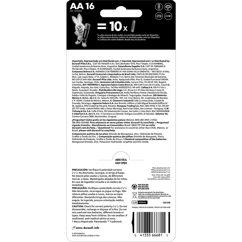 Kit Duracell com 16 Pilhas AA e 16 Pilhas AAA
