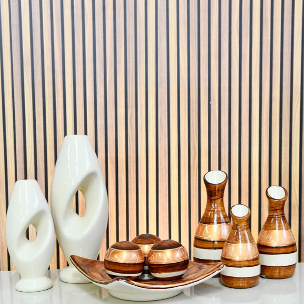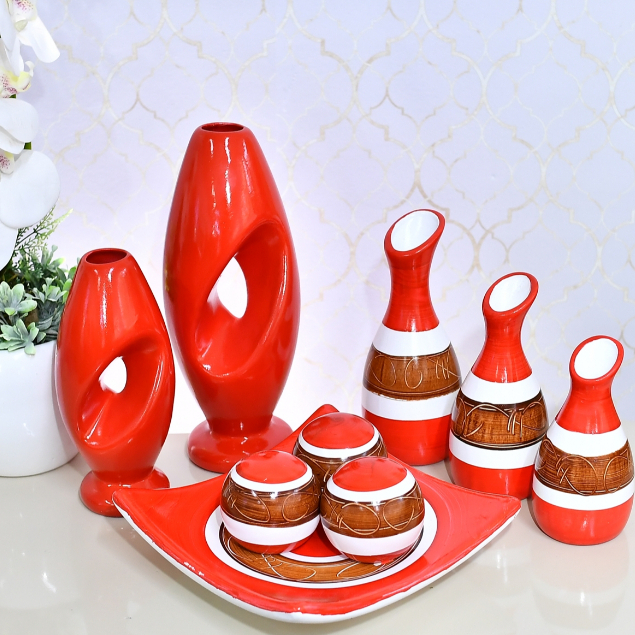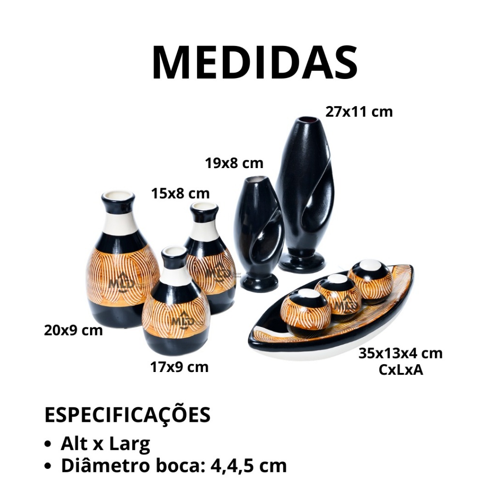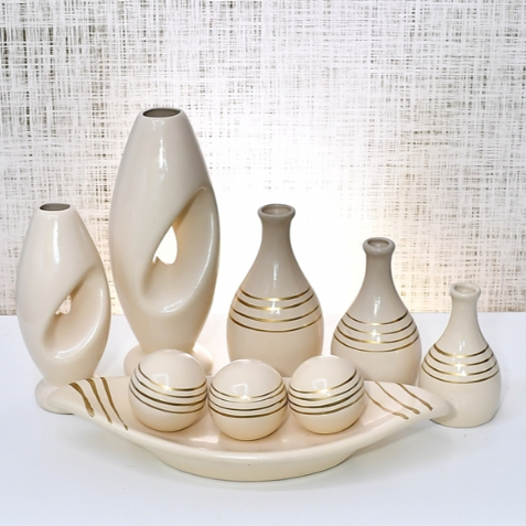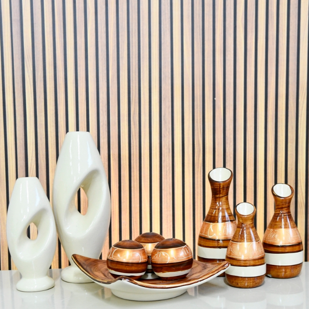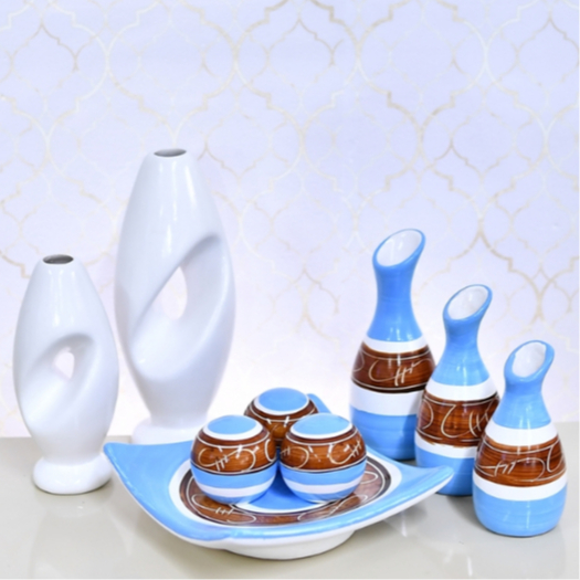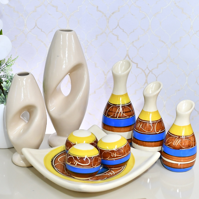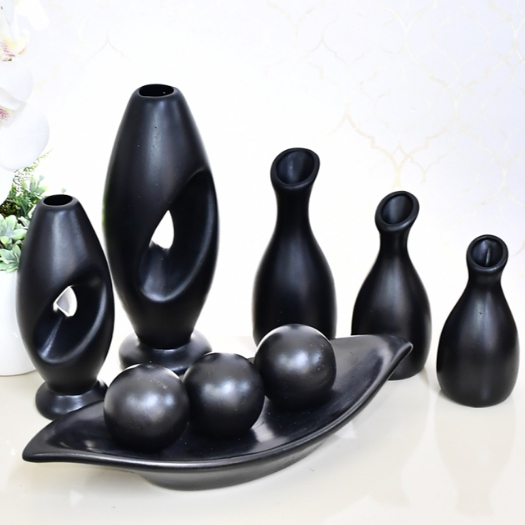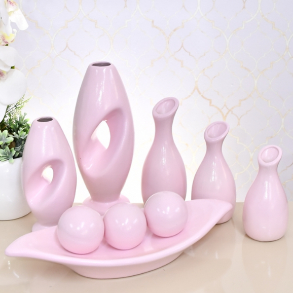 Kit Enfeite 9 Peças Vasos Cerâmica Sala Conjunto Completo Decorativas Trio Rack Centro Mesa Cozinha