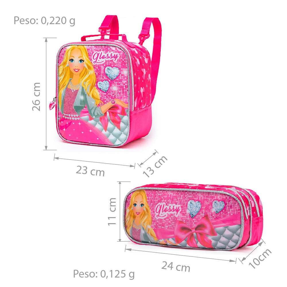 Kit Escolar Feminino Estojo Lancheira Reforçada Passeio Princesa
