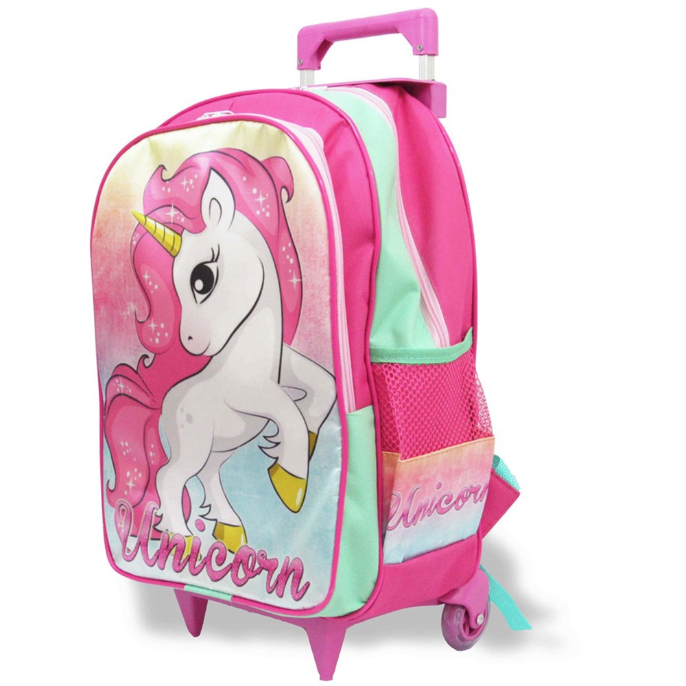 Kit Mochila Unicórnio Fantasy de Rodinhas G lancheira e Estojo
