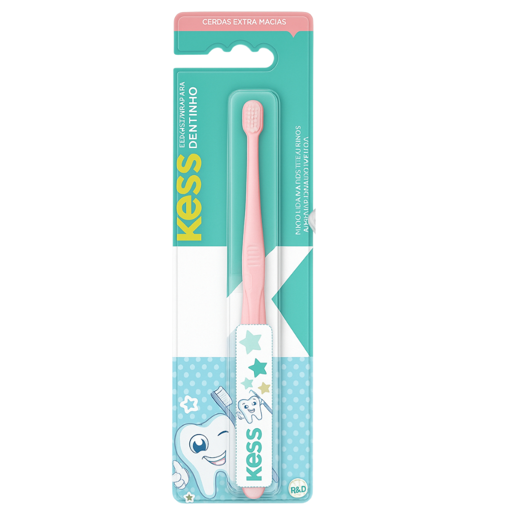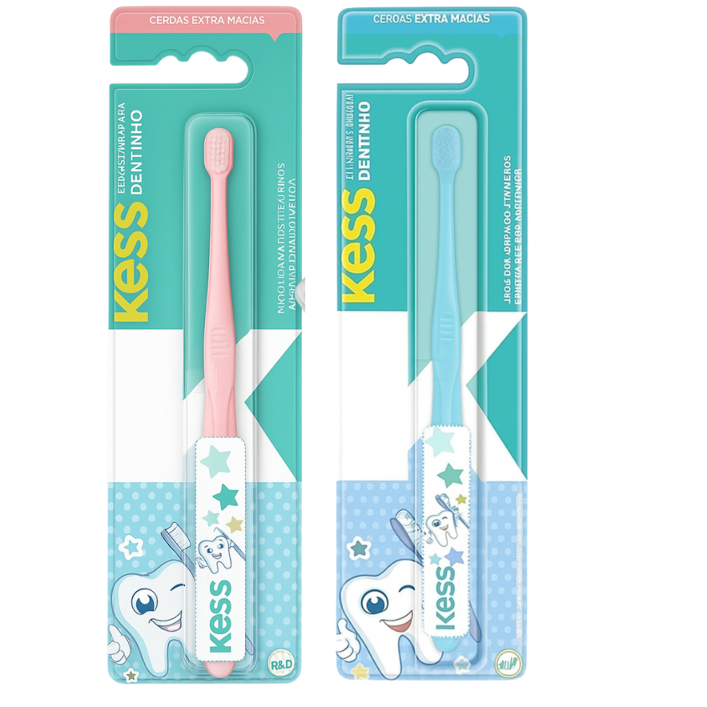 Kit Escova de Dentes e Porta Escova Infantil Bebê Extra Macia Confortável para Crianças Higiene Bucal