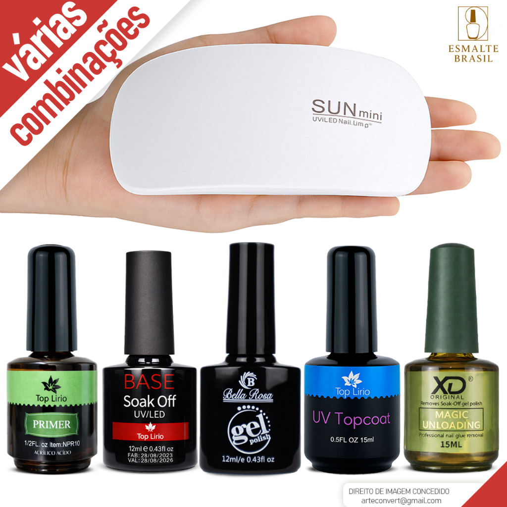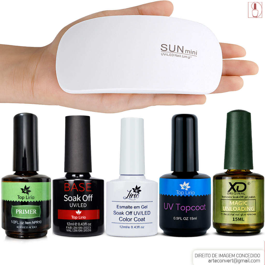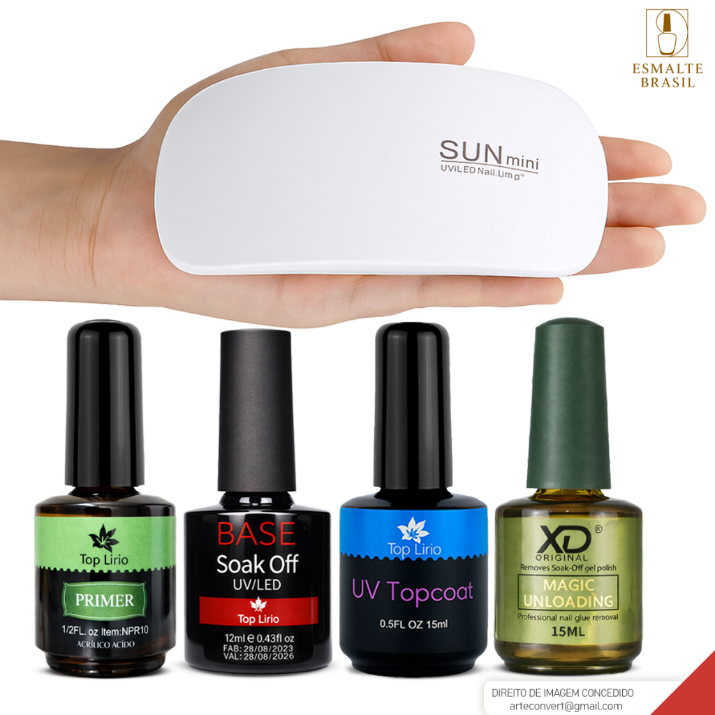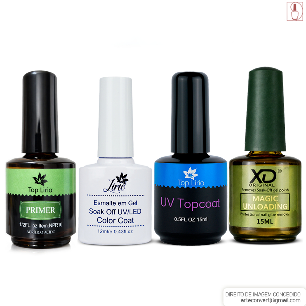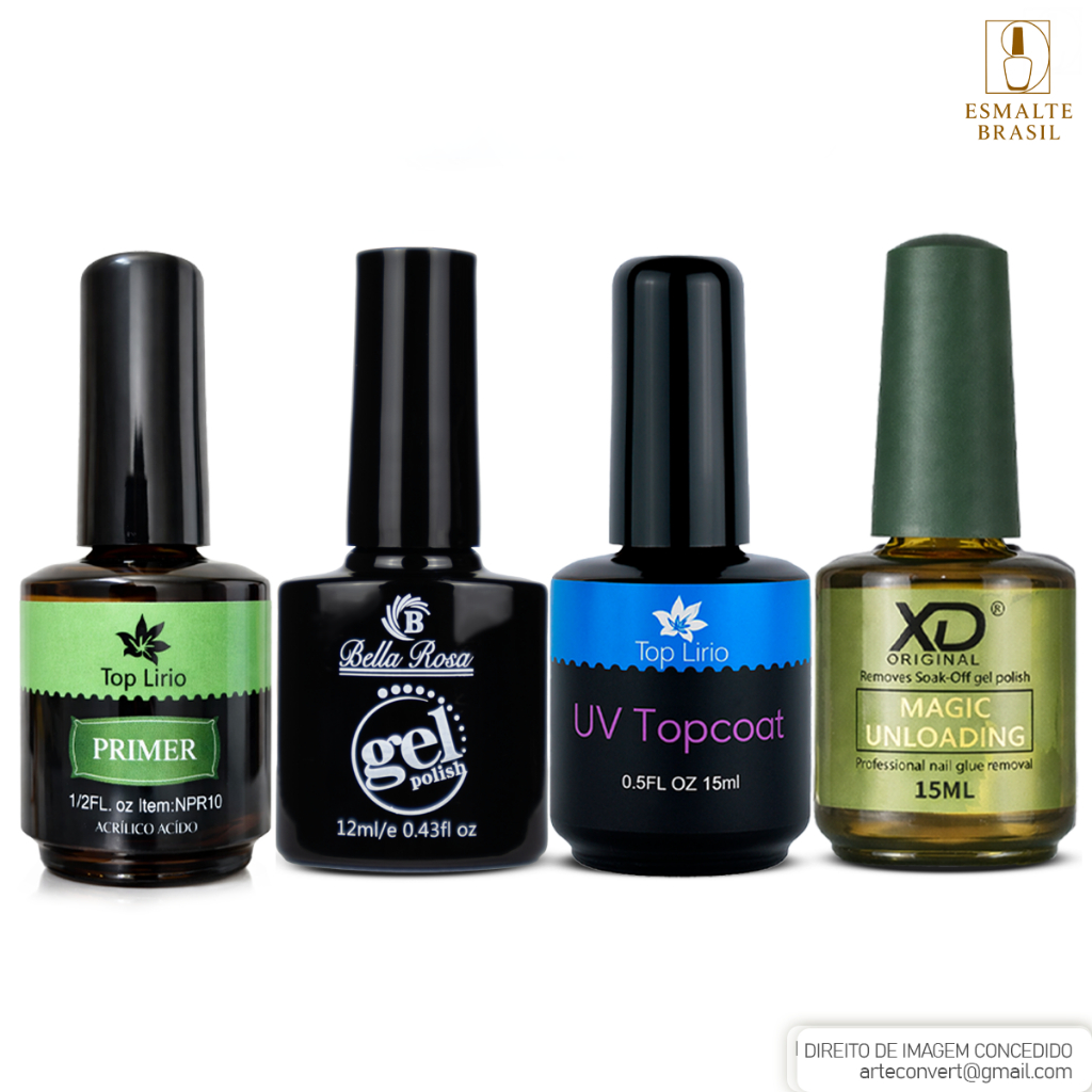 Kit Esmaltação em Gel c/ Top Coat Primer Magic Remover Esmalte Unhas Manicure