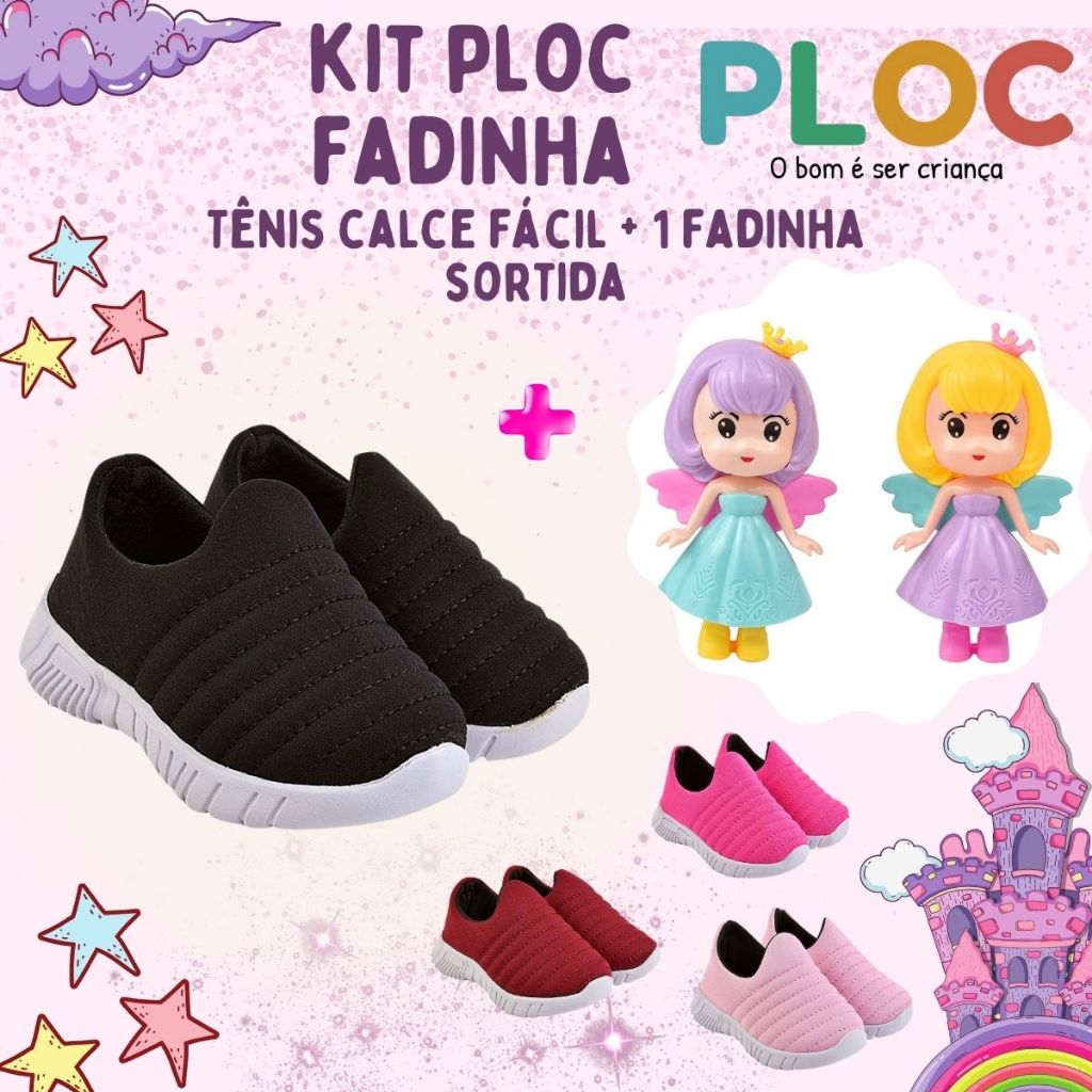 Kit Fadinha Ploc: Tênis P26 Calce Fácil Passeio Escola + 1 FADINHA SORTIDA Ploc Brinquedos