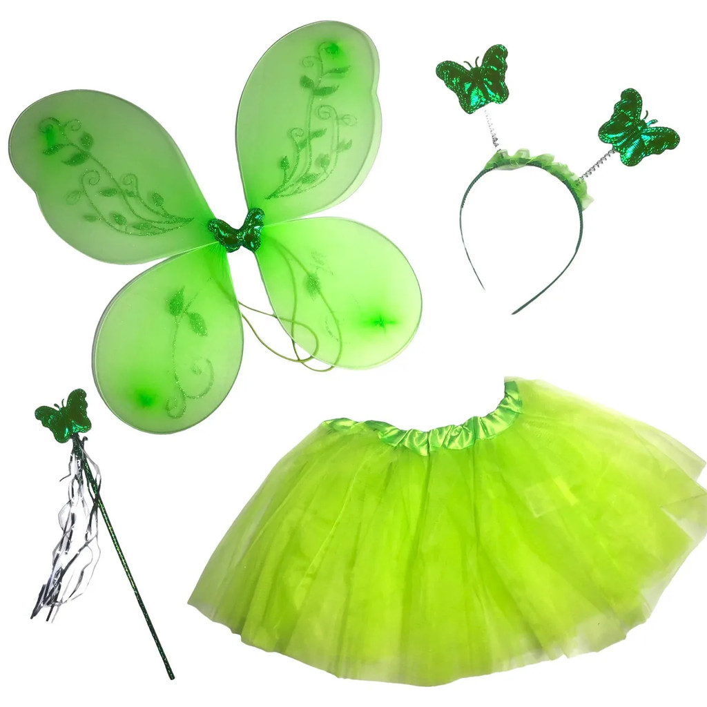 Kit Fantasia De Fada Borboleta Asa Com Varinha, Tiara e Saia Tule