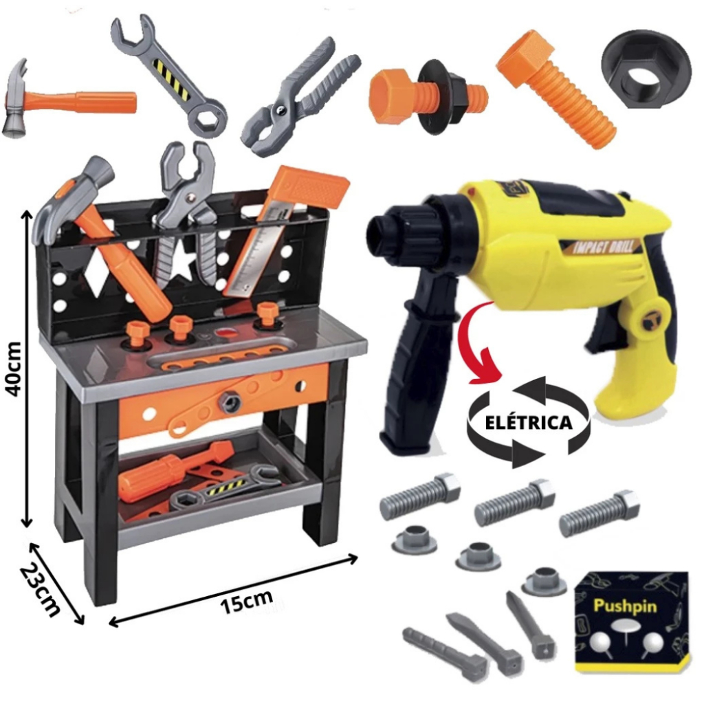 Kit Ferramentas Infantil Com Bancada E Parafusadeira Furadeira Elétrica de Brinquedo
