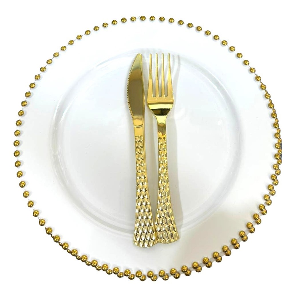 Kit Festa 6 Pratos E 6 Talheres de Jantar Bolinhas Douradas