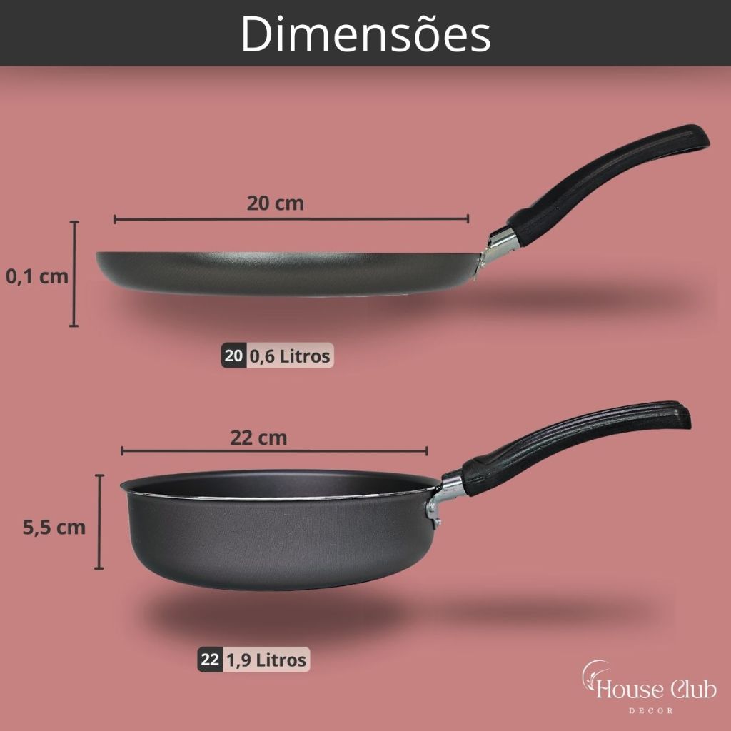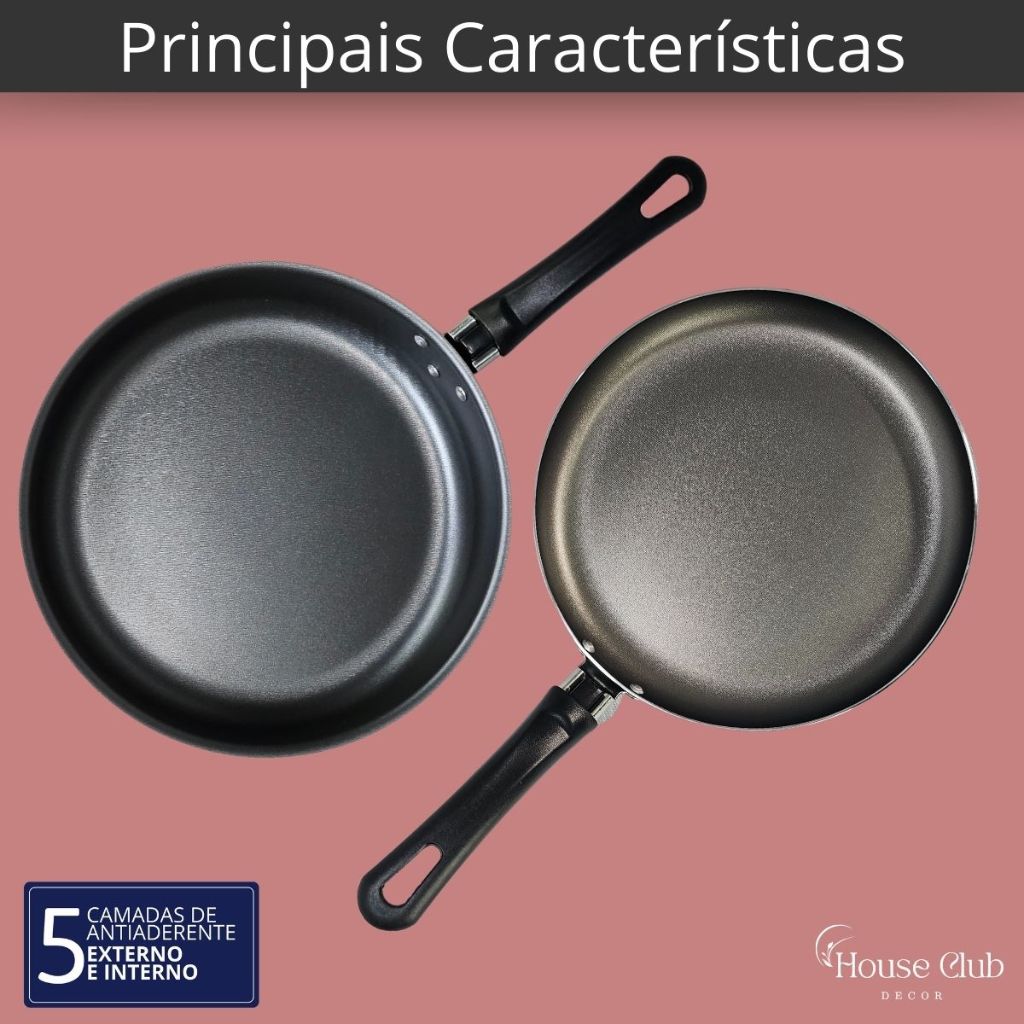Kit Frigideira Alta 22 cm com Tampa e Panquequeira 22cm Antiaderente com 5 Camadas de Teflon Grafite