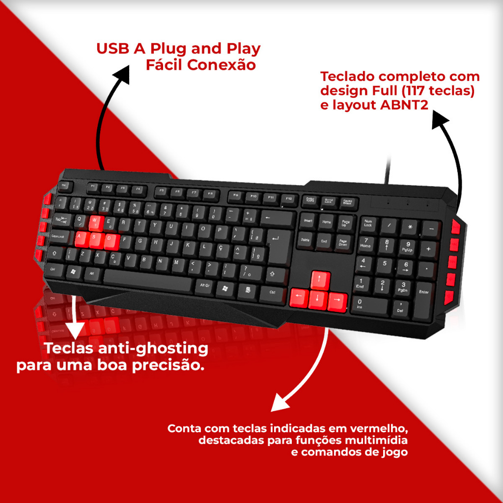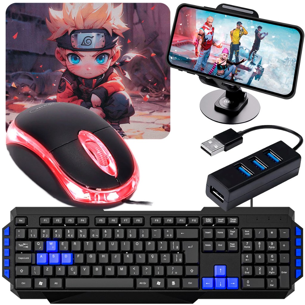 Kit Gamer Celular com Teclado ABNT2, Mouse Óptico e Suporte | Tipo C ou V8