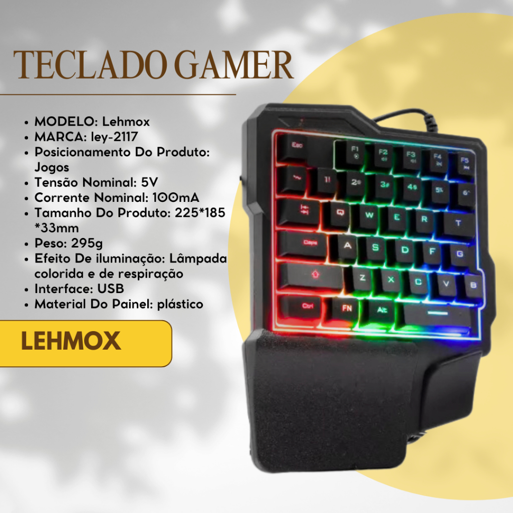 Kit Gamer Mobilador de 1 mão Teclado Mouse 2400dpi Rgb P/ Celular Pubg Cod Iphone Otg p/ Iphone
