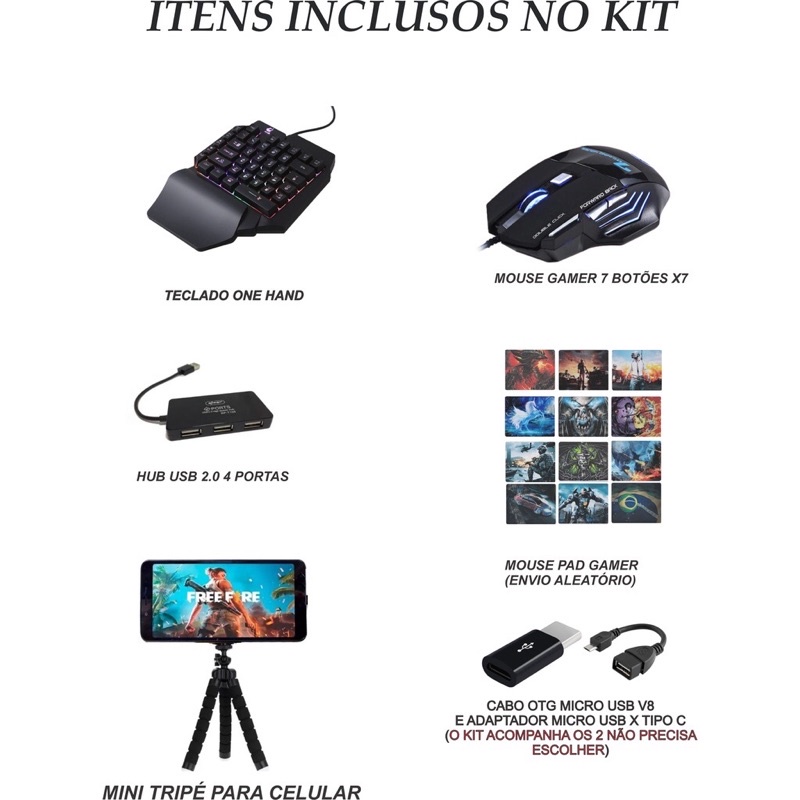 Kit Gamer Mouse E Teclado One Hand + Kit Cel Mobilador + Mouse Pad