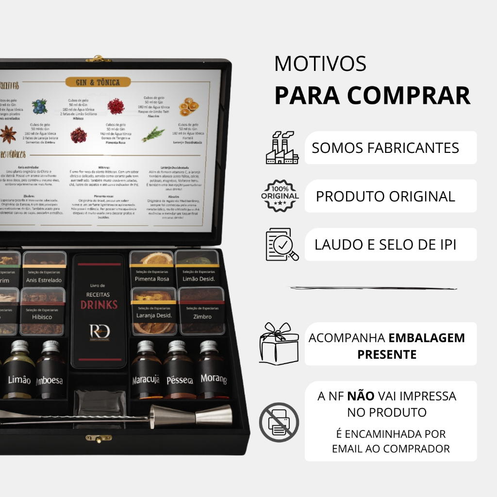 Maleta Especiarias e Acessórios para Drinks, Gin e Chás. Pronto para Presente.