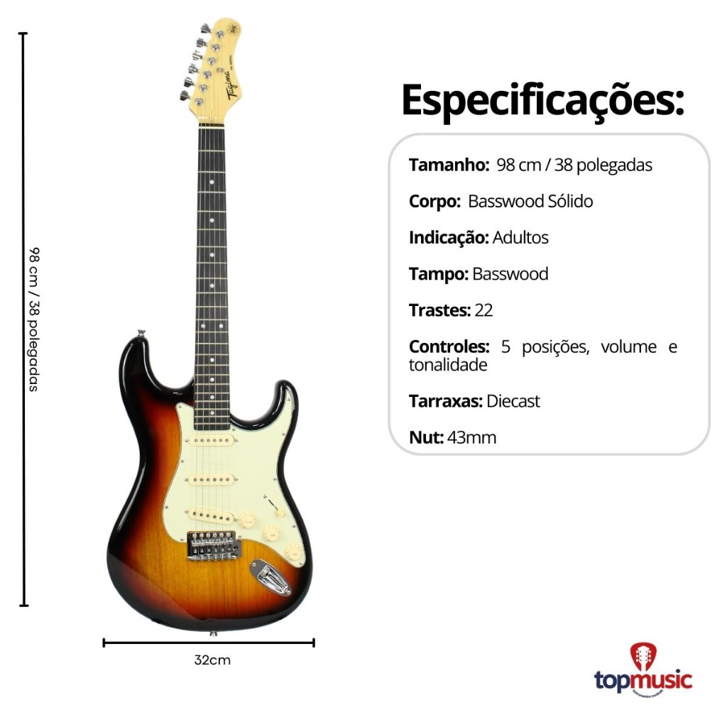 Kit Guitarra Tagima Stratocaster Tg500 + Amplificador Sheldon + Acessórios