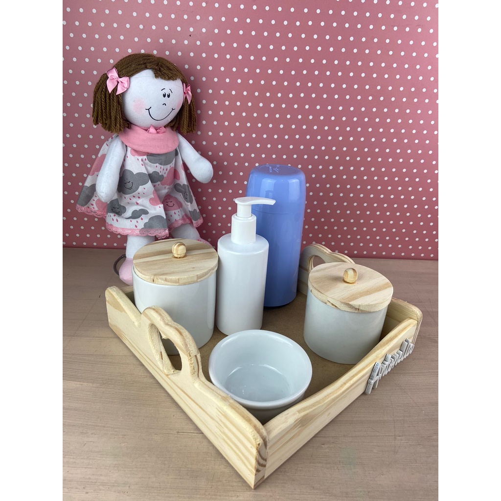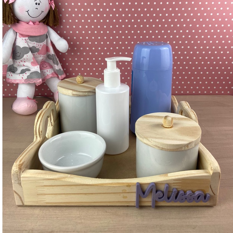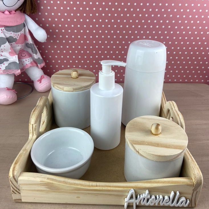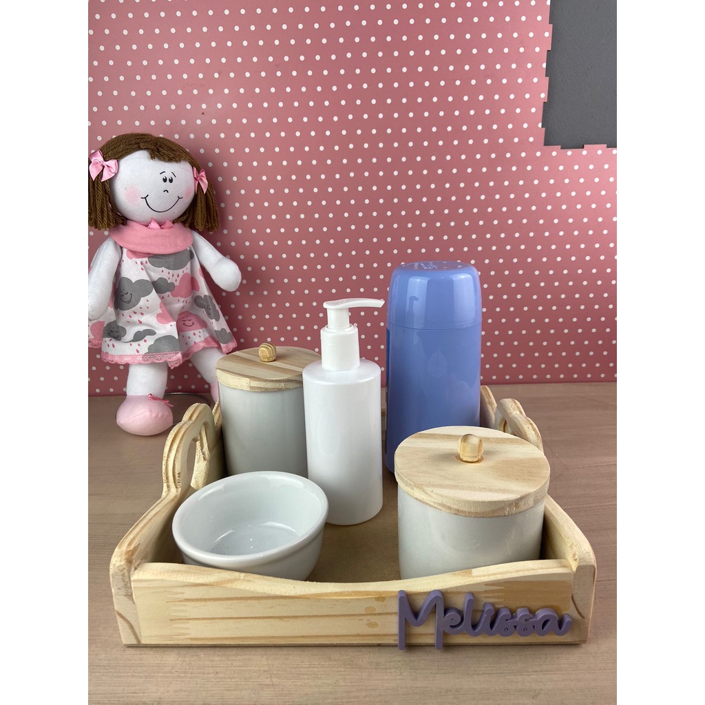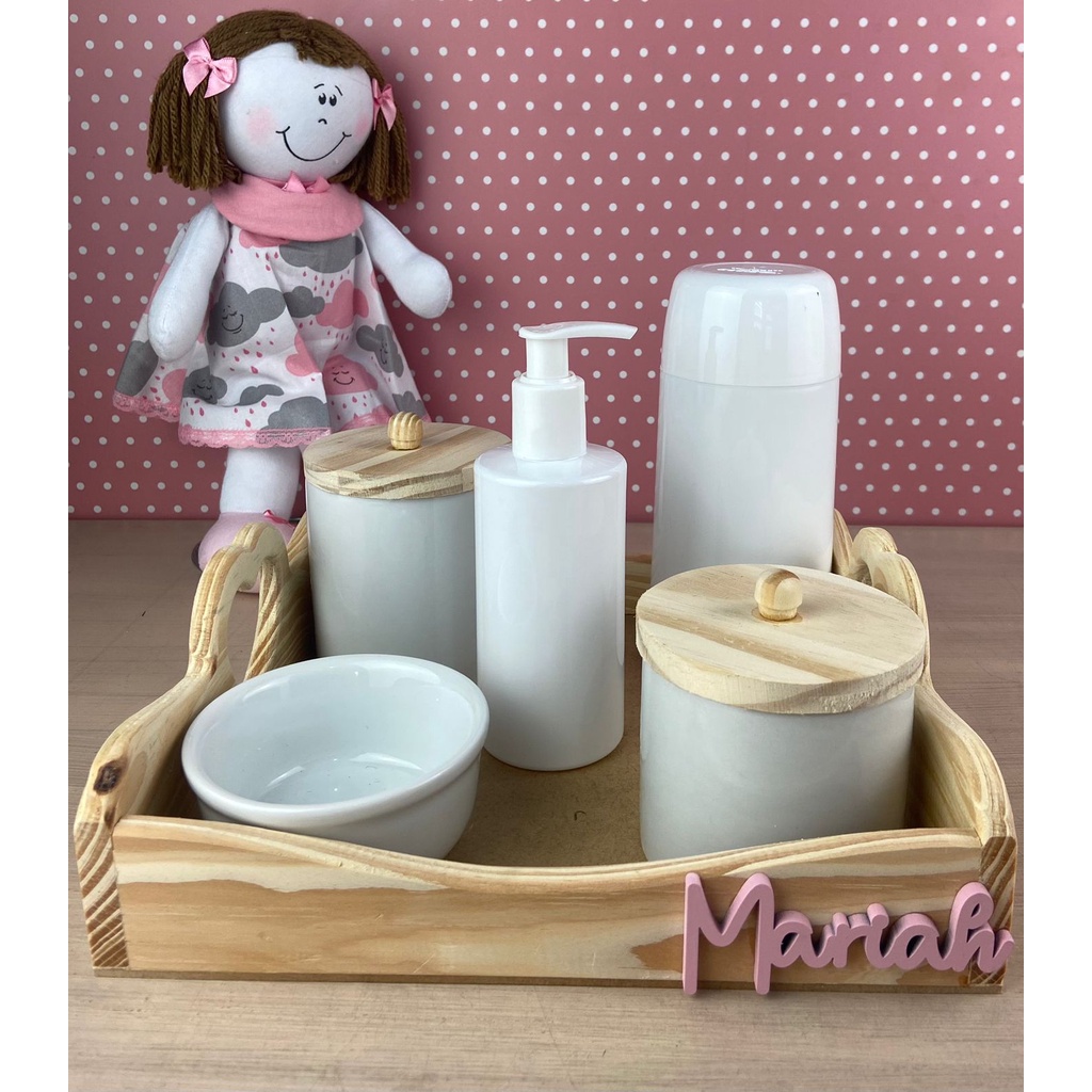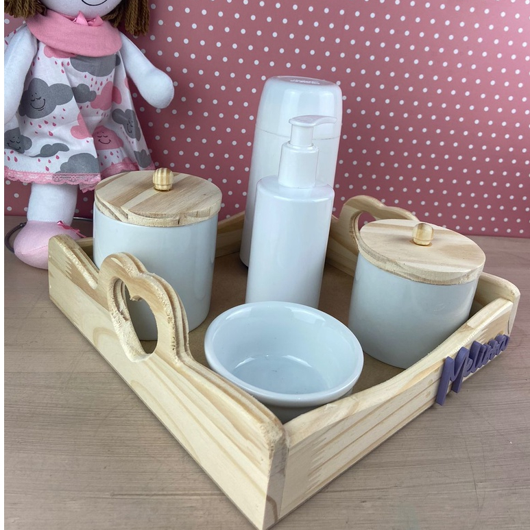 Kit Higiene Bebê Porcelana Pinus Coração Garrafa Nome Personalizado Menina
