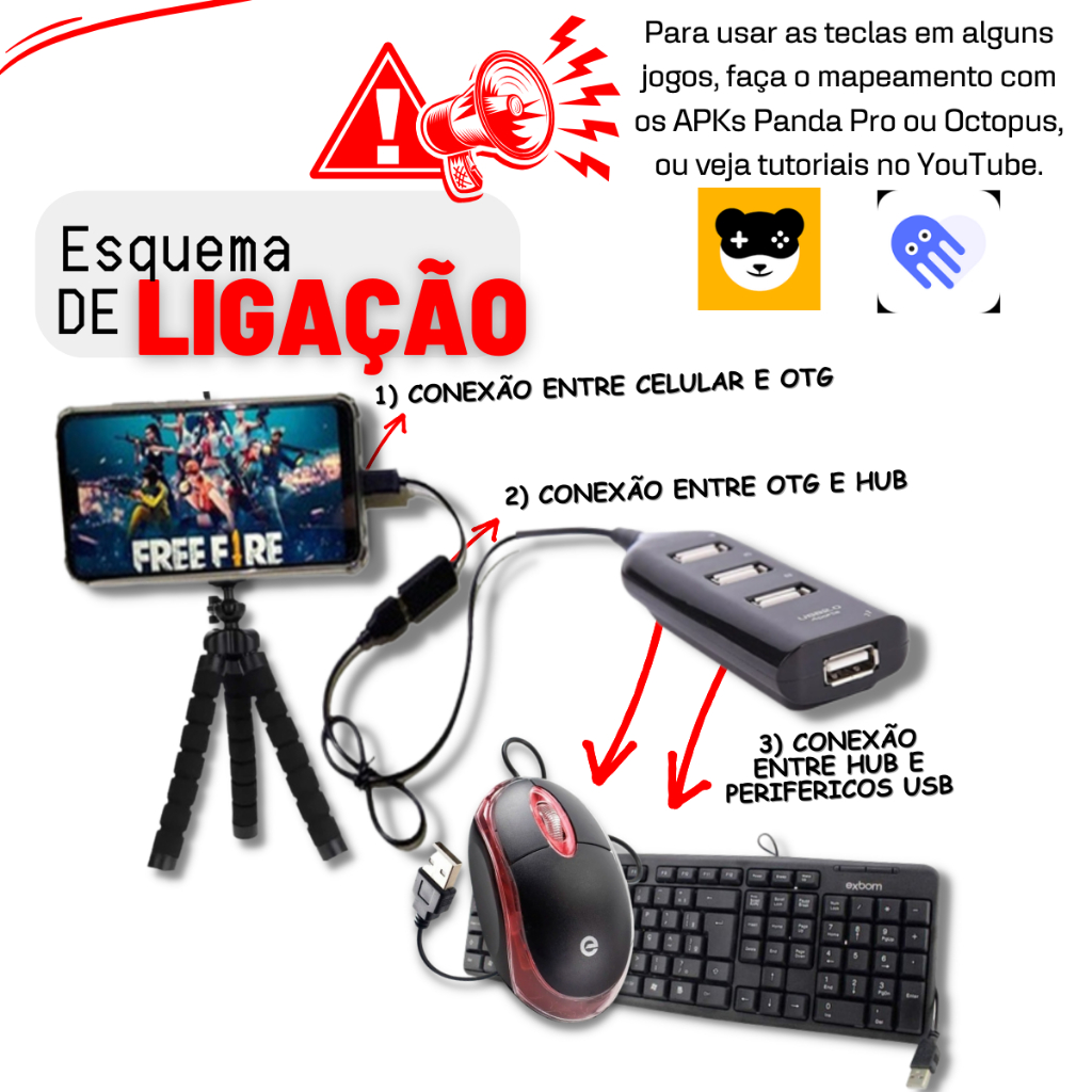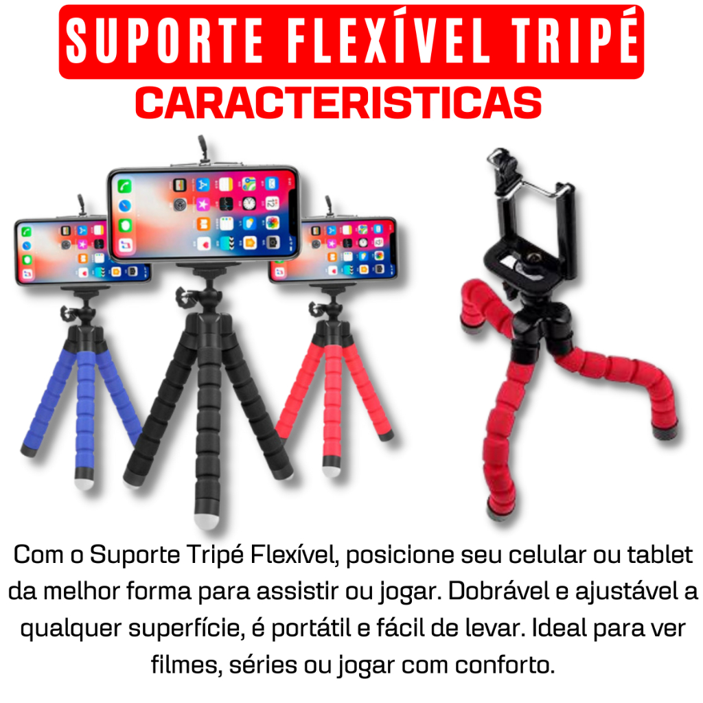 Kit Hub Usb 4 Portas + Cabo OTG Tipo C Para Usb + Tripé Flexível Suporte Celular Kit Mobilador