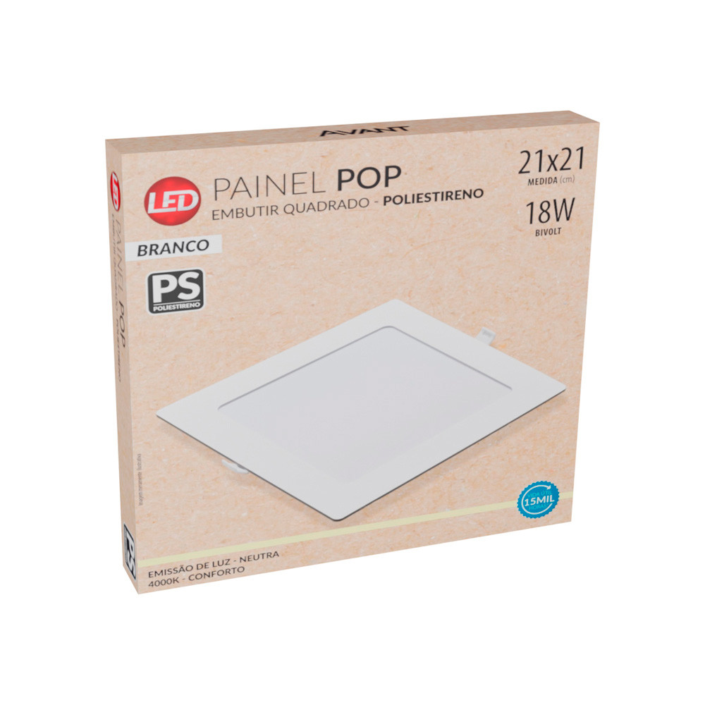 Kit Iluminação 9 Painéis Led Quadrado Embuir 18W Avant Bivolt 21cm Luz Neutra 1080 Lúmens