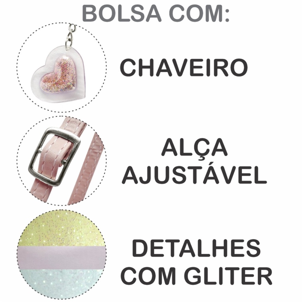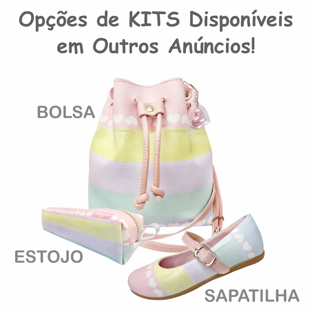 Kit Infantil Bolsa Infantil e Estojo Escolar Colorida com Corações Bolsinha Infantil Magicc KI-085