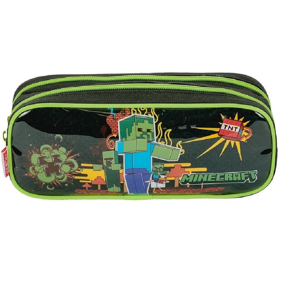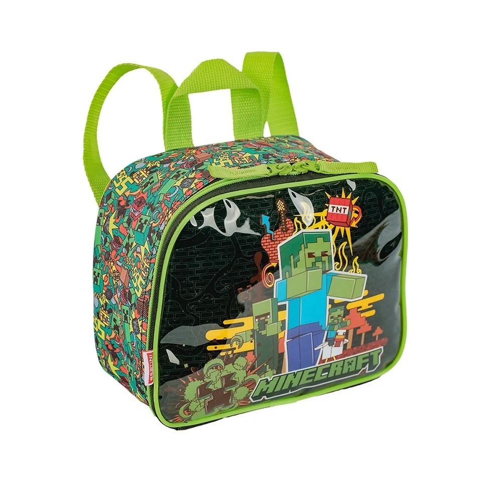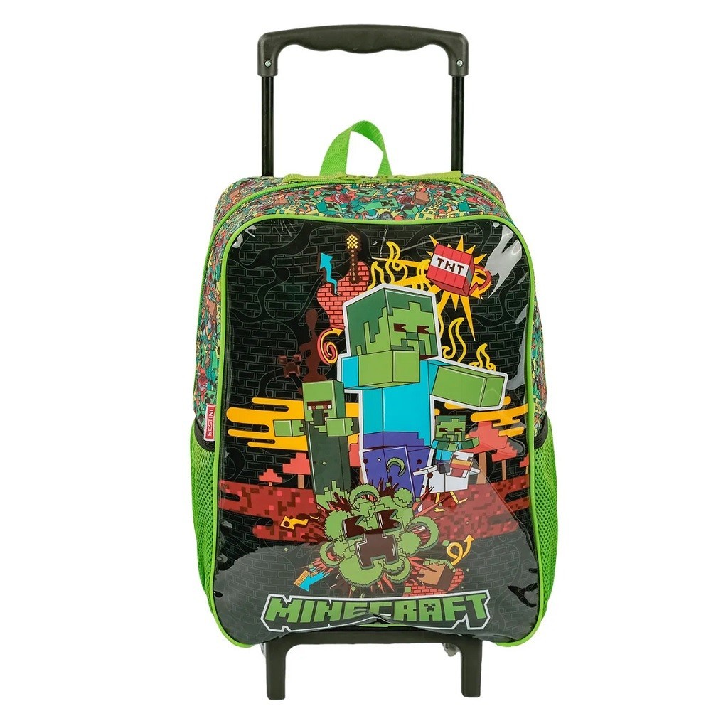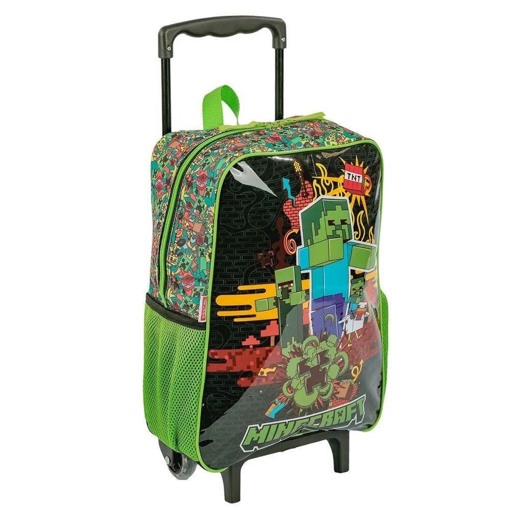 Kit Infantil Minecraft Fun Mochila Rodinhas Estojo Lancheira