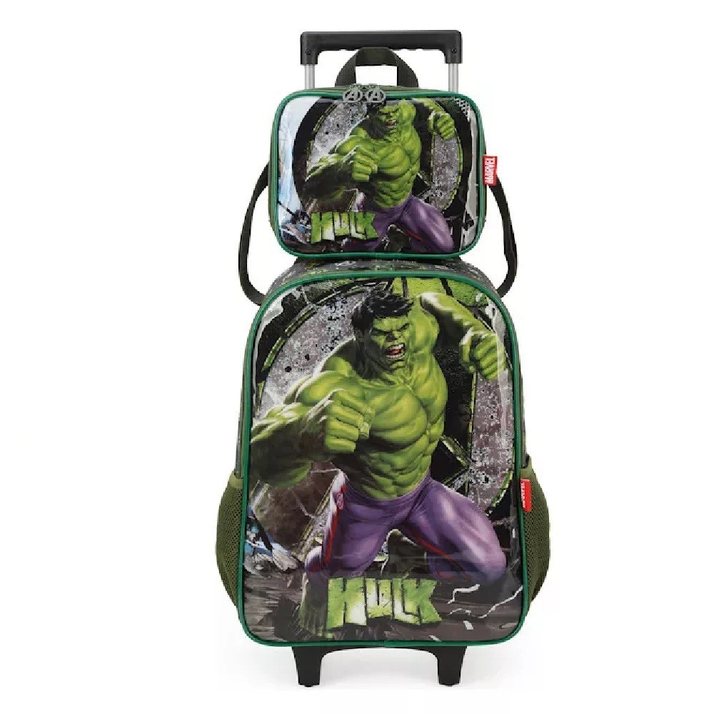 Kit Infantil Mochila Rodinhas Lancheira E Estojo Hulk Luxcel
