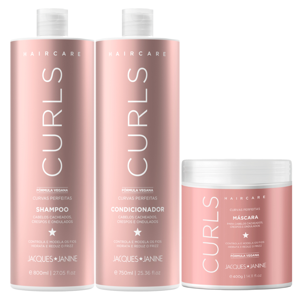 Kit Jacques Janine Hair Care Curls Shampoo 800ml Condicionador 750ml Máscara Creme Hidratação 400g
