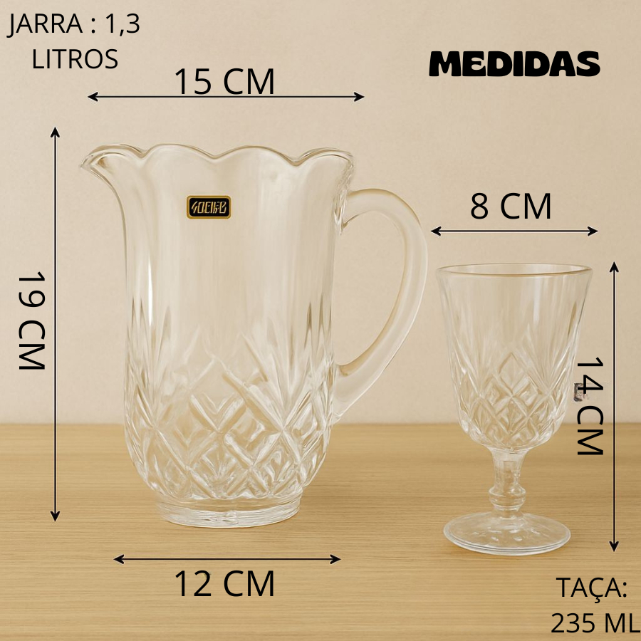 Kit Jarra e Taças Suco Drinks Bebidas Fracalanza