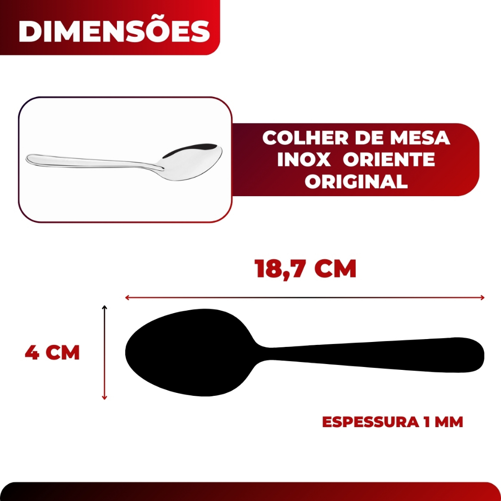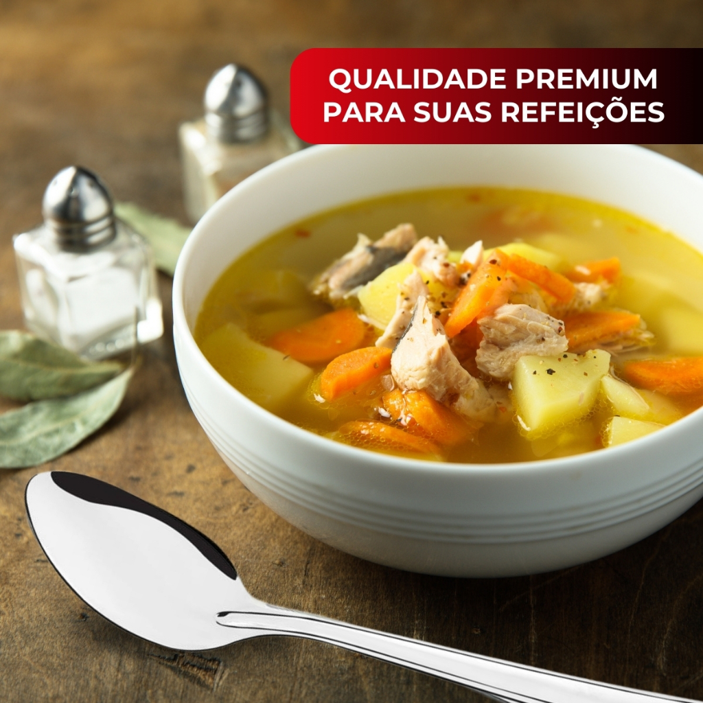 Kit Jogo 12 Colher Mesa Sopa Buffet Restaurante Lanchonete Aço Inox Linha Oriente Original Line