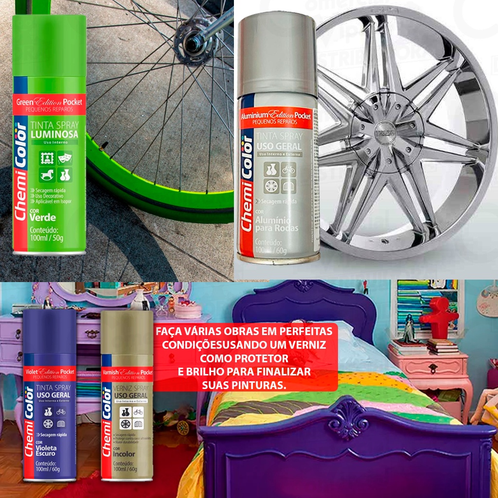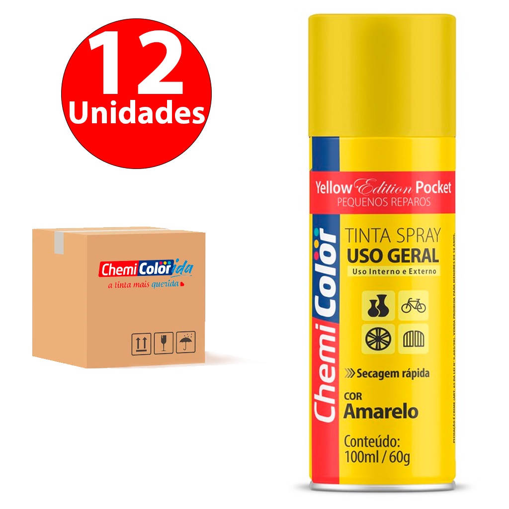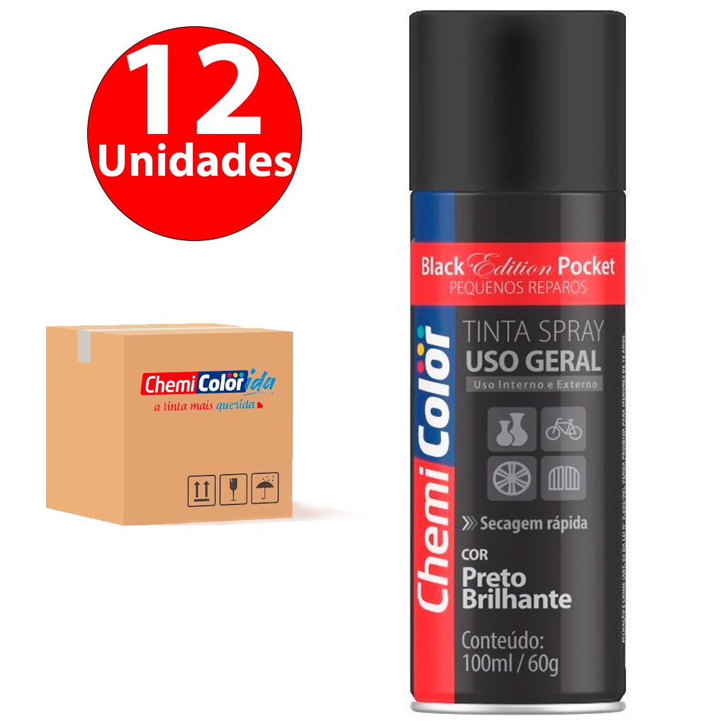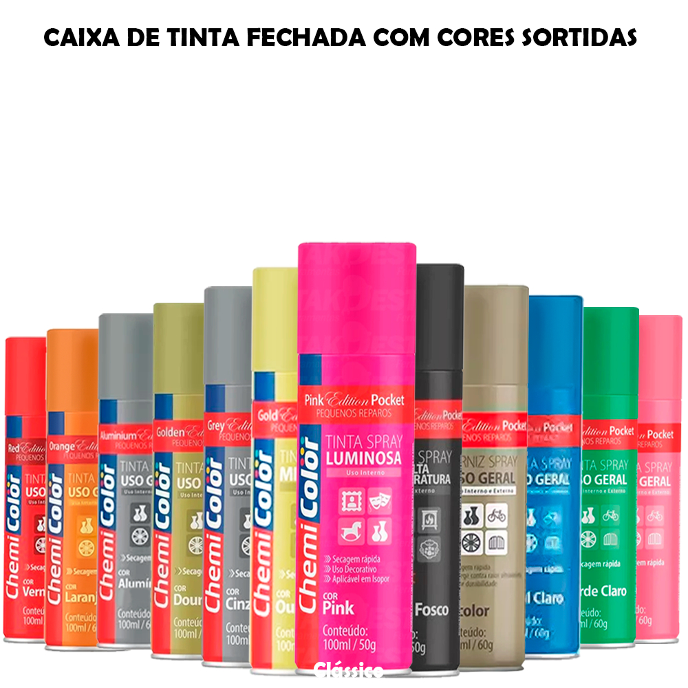 Kit Jogo 12 Tintas Spray Pocket Caixa Fechada Todas As Cores Uso Geral Metálica Fluorescentes 100ml