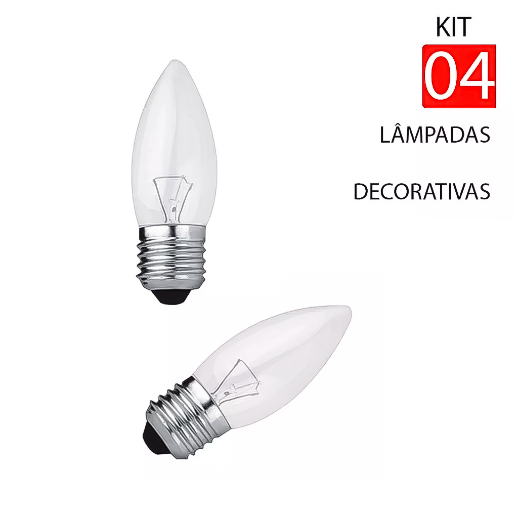 Kit Jogo 4 Mini Lâmpadas Vela Decorativas E12 7W C7 220V Para Decoração Painel Festas Lindo